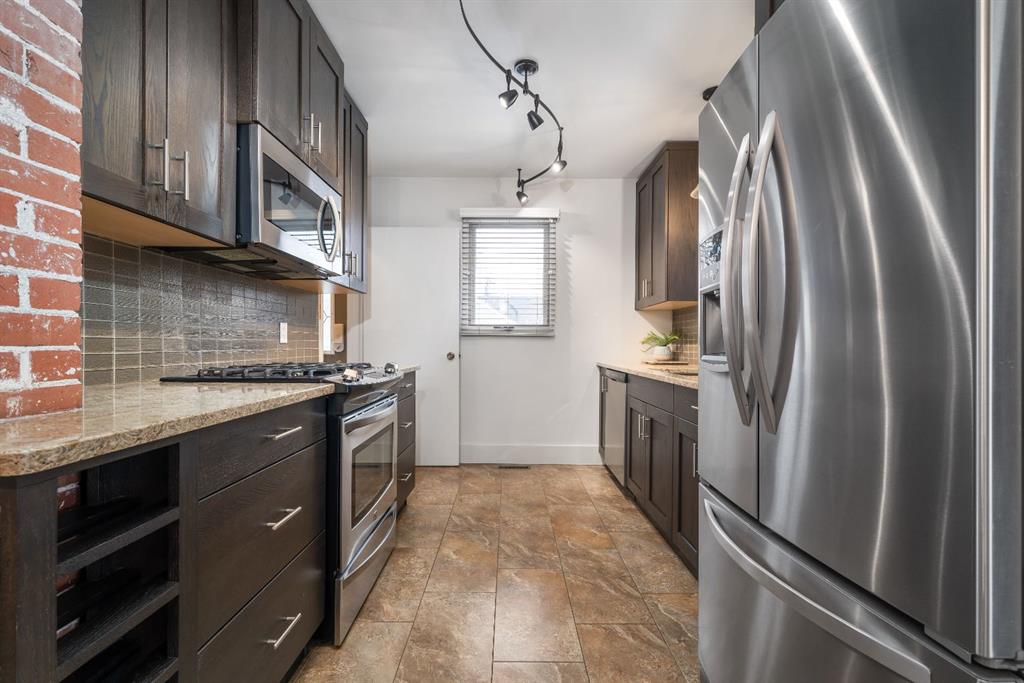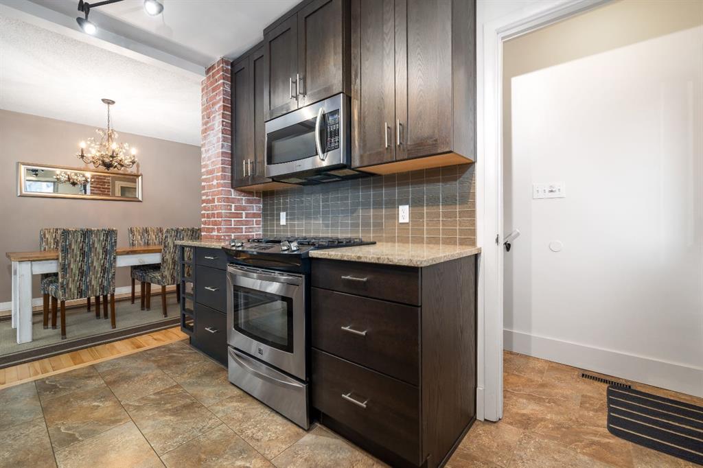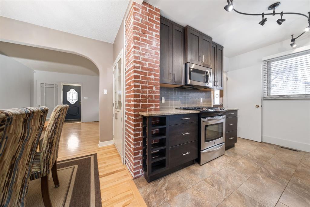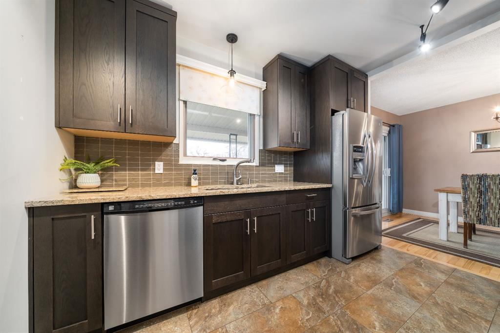 Welcome to 489 10th Street SE — a beautifully maintained and thoughtfully updated bungalow offering space, style, and functionality throughout. Step inside through the front entry and you’re greeted by a bright, spacious living and dining area — ideal for both everyday living and entertaining. Hardwood floors add warmth and character throughout the main level, while large windows fill the space with natural light. From the dining room, step directly onto your oversized covered deck, creating a seamless indoor-outdoor living experience. The kitchen is a true standout, featuring ceiling-height dark stained cabinetry, granite countertops, stainless steel appliances, and a stylish exposed brick feature wall that adds a unique touch of character. The main floor is complete with two comfortable bedrooms and a beautifully updated 4-piece bathroom showcasing granite countertops and a newer tiled tub surround. Downstairs offers excellent additional living space with two more bedrooms, including one with built-in cabinetry and the option to add a sink for a future kitchenette — perfect for guests, extended family, or flexible use. You’ll also find a cozy family room with a gas fireplace, a 4-piece bathroom, a dedicated laundry area, utility room, and plenty of storage. Flooring includes a combination of laminate and carpet for comfort and durability. Outside, the property continues to impress. Enjoy the large covered deck, spacious yard, and a dedicated garden area — all maintained with underground sprinklers in both the front and backyard. The 24” x 24” double detached heated garage provides excellent parking and workspace, while the new vinyl fencing (2025) offers added privacy and a clean, modern finish. Located in the heart of SE Hill, one of Medicine Hat’s most desirable and historic neighbourhoods, you’ll love the tree-lined streets, character homes, and unbeatable walkability. Just minutes from downtown amenities, schools, parks, the river valley, and extensive walking and biking trails, this location offers the perfect balance of lifestyle and convenience. Exceptionally clean, well cared for, and move-in ready — this is a home you don’t want to miss!