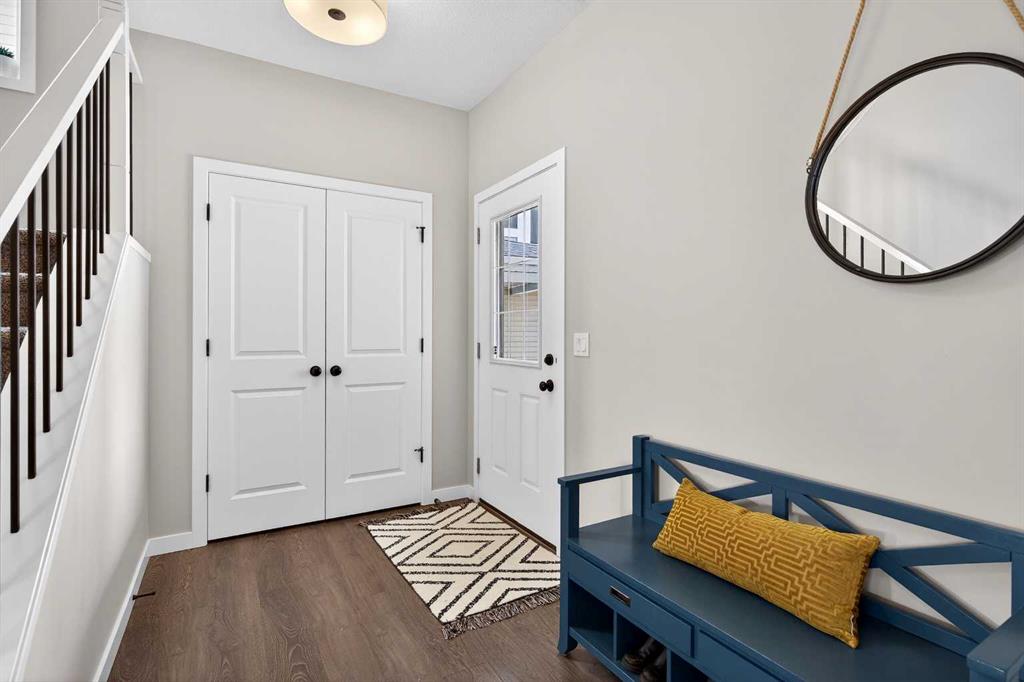 The kitchen is ready for real life with quartz countertops, tons of prep space, pot & pan drawers, and a large pantry. But here’s a fun surprise: this main floor has a secret weapon—a huge walk-in closet tucked between the mudroom and foyer. It’s the perfect catch-all for jackets, hockey gear, Costco runs, or extra pantry storage.