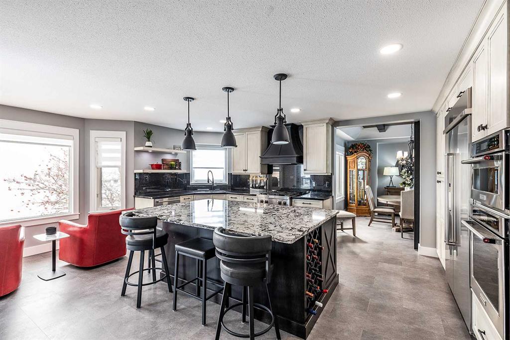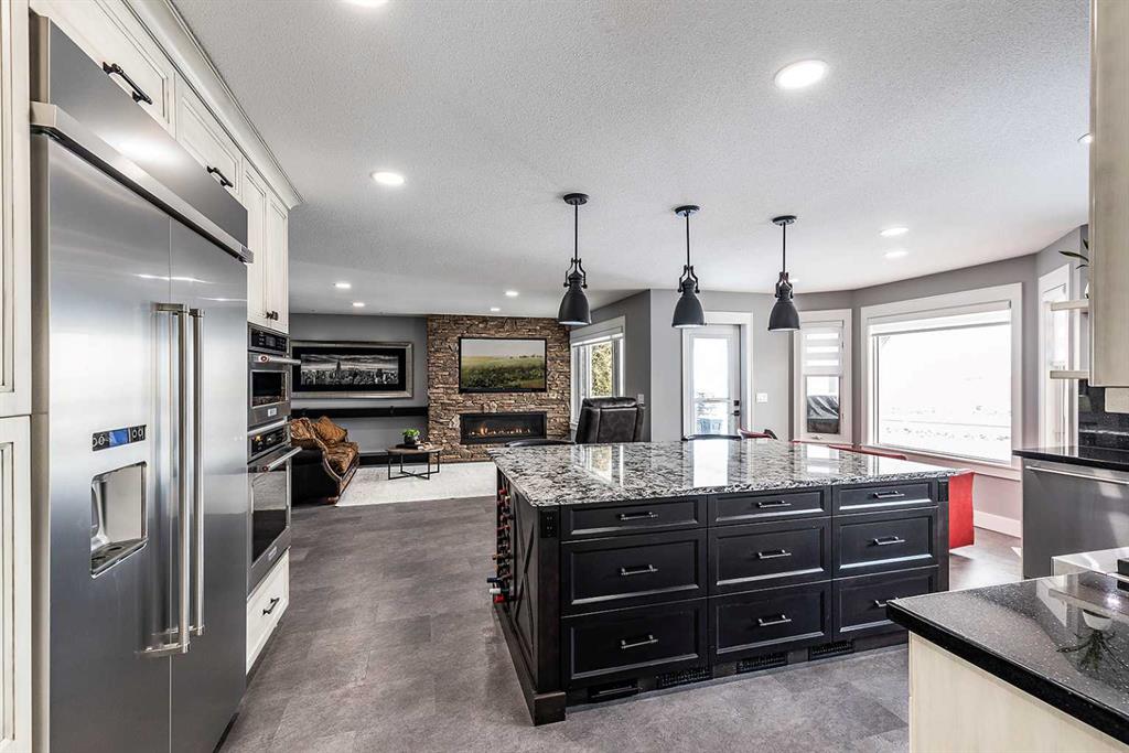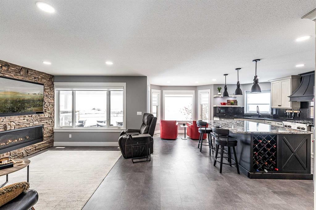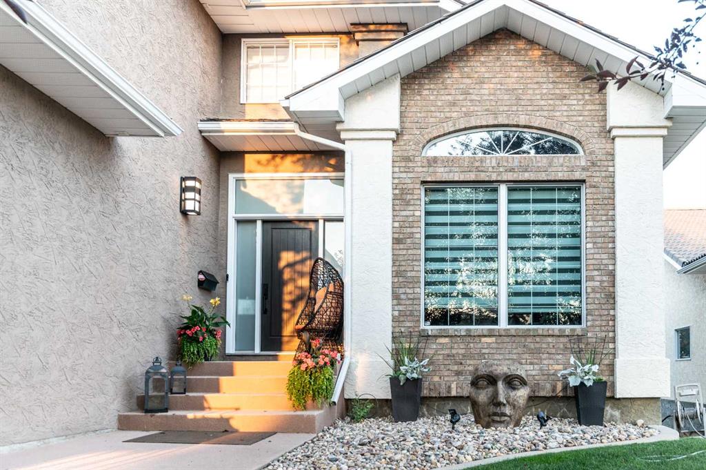 Executive Two-Storey Backing the Coulees | Fully Renovated | Triple Garage - Welcome to 59 Taylor Blvd SE—an extensively renovated executive two-storey backing directly onto the coulees and walking paths, offering unmatched privacy, no rear neighbours, and breathtaking views. Renovated throughout in 2019 by Kenco Renovations, this home showcases elevated design, custom architectural detail, high-end finishes, and exceptional attention to detail. Adding even more value, the home also features brand new asphalt shingles. The main floor makes an immediate impression with dramatic vaulted ceilings accented by striking custom exposed beams, oversized windows, and a sophisticated modern palette that fills the space with natural light. Durable vinyl flooring runs throughout, while the formal living room creates a stunning focal point with its scale and architectural character. The formal dining room is perfectly positioned to capture the coulee views and can be closed off from the kitchen with a stylish barn door—ideal for entertaining. The chef’s kitchen is a true centrepiece, designed for both everyday living and entertaining, featuring granite countertops, custom cabinetry, a massive eat-at island, built-in wall oven and microwave, gas cooktop with a statement custom hood fan, premium appliance integration, and panoramic views from the bright breakfast nook. The adjoining family room offers a cozy gas fireplace and direct access to the upper covered deck. This level also includes a private office, a beautifully appointed laundry room with built-in cabinetry, a 2-piece powder room, and access to the fully finished heated 28x27 triple attached garage. Upstairs, the primary retreat takes full advantage of the incredible views and features a luxurious 6-piece ensuite with heated tile floors, a spacious seperate walk-in shower with dual heads, a soaker tub overlooking the coulees, dual sinks, separate water closet, and a walk-in closet. Two additional bedrooms and a 4-piece bathroom complete the upper level. The fully developed walkout lower level is designed for entertaining, featuring a massive recreation and games room, a second gas fireplace, wet bar with fridge, two additional bedrooms (one currently used as a home gym), a 3-piece bathroom with steam shower, and excellent storage space. Step outside to the beautifully landscaped backyard with patio space, green space, dog run, and direct access to the walking paths—perfectly positioned to enjoy this exceptional setting. Additional features include two newer furnaces, two A/C units, and average utilities of $390/month. This is a rare opportunity to own a turn-key executive home in one of Medicine Hat’s most sought-after locations, offering timeless quality, exceptional functionality, and unbeatable coulee views.