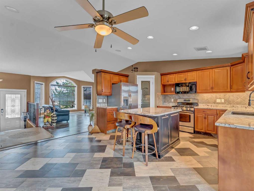 This home offers two bedrooms on the main level, including a spacious primary retreat with private access to the upper deck and a 3-piece ensuite featuring a walk-in shower.