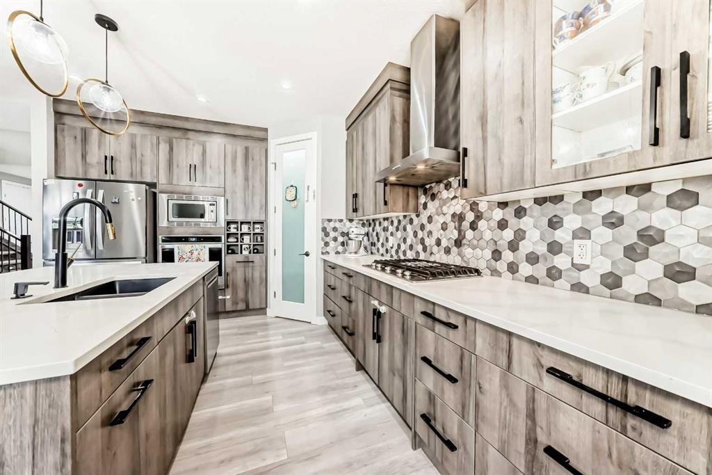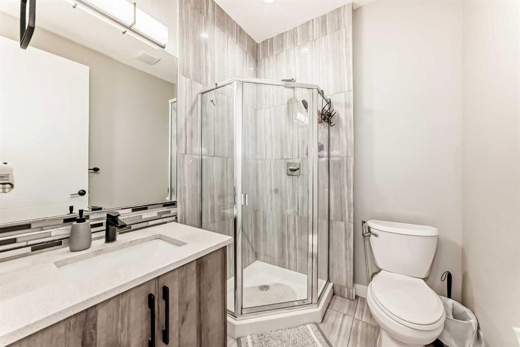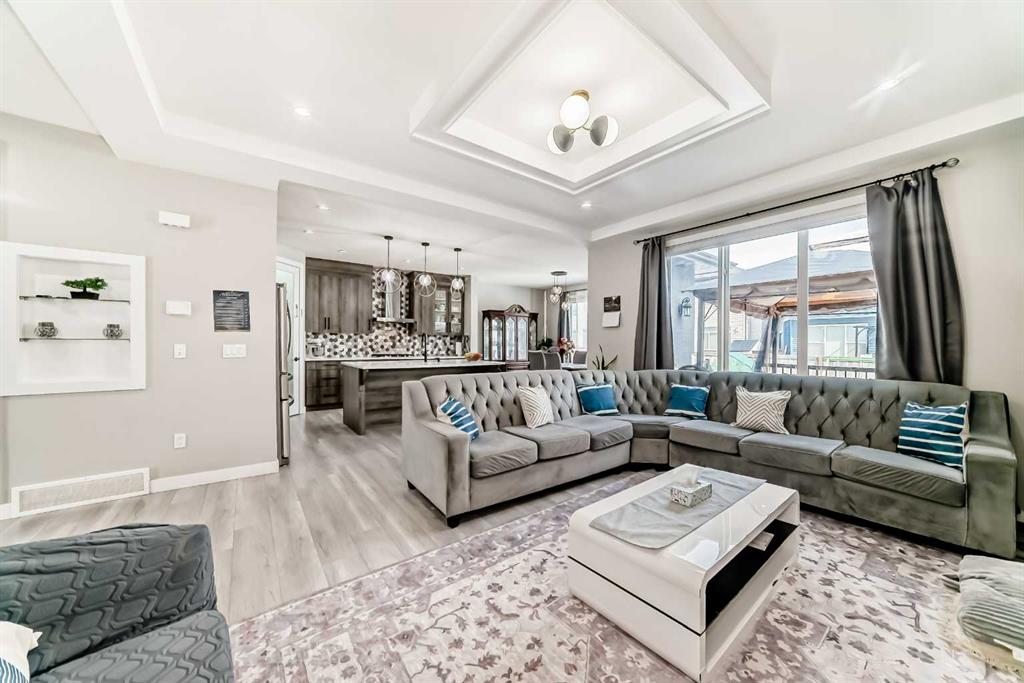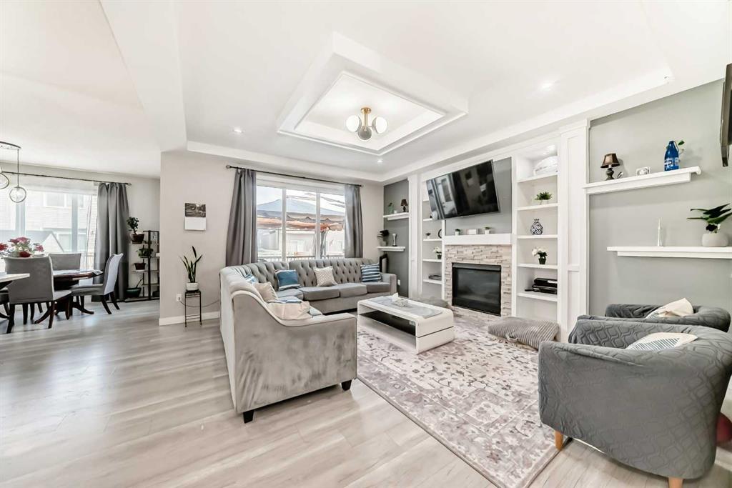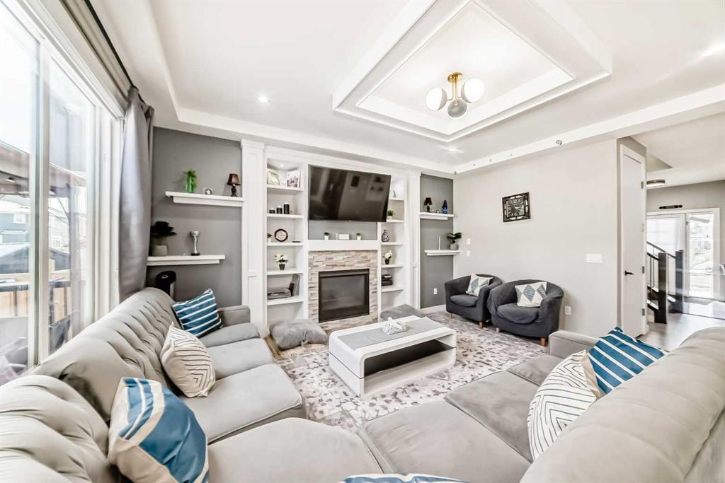 ***BEAUTIFUL FAMILY HOME WITH 4 BEDROOMS ON UPPER LEVEL + 2 BEDROOM LEGAL BASEMENT SUITE TOTAL OF 3251 SQFT LIVING SPACE *** Welcome to this stunning and spacious family home located in the highly sought-after community of Bayside in Airdrie. Thoughtfully designed and better than new, this property offers exceptional comfort and functionality with a total of four bathrooms and eye-catching stucco exterior. The main floor features a versatile office/den, a convenient 3-piece full bathroom, and a beautifully upgraded gourmet kitchen complete with a gas stove, stainless steel appliances, modern fixtures, and a well-organized pantry. The dining area opens onto a generously sized deck, perfect for entertaining. The living room showcases a cozy gas fireplace with a built-in entertainment feature, creating a warm and inviting space. Upstairs, a striking skylight fills the home with natural light. You’ll also find a spacious bonus room, a bright laundry area with stainless steel washer and dryer, and a large primary bedroom featuring a walk-in closet and a luxurious 5-piece ensuite. The oversized double attached garage provides ample room for parking and additional storage. Exterior upgrades include Gemstone lighting, adding both style and convenience. The fully developed LEGAL basement offers a separate entrance leading to a well-designed, self-contained 2-bedroom legal suite with its own separate furnace system (city-approved). Whether used as a mortgage helper or for extended family, the possibilities are endless. With a fully landscaped and fenced yard, this move-in-ready home truly has it all—just unpack and enjoy.