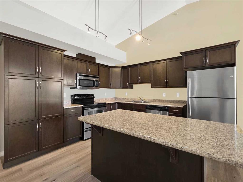 Wake up to some of the best Rocky Mountain views you can find from this top-floor, front-facing unit. Whether you’re in the living room, out on the deck, or in either bedroom, the sunrise over the mountains makes this place feel incredible. With higher ceilings, fresh new flooring, and a practical two bedroom, two bathroom layout, it just works. The gas fireplace adds that extra bit of warmth, while air conditioning keeps things comfortable year-round. You’ve got two parking stalls—one in the heated underground parkade and one above ground—and access to the building’s fitness centre. Easy living, low maintenance, and nothing to worry about—just move in and enjoy.