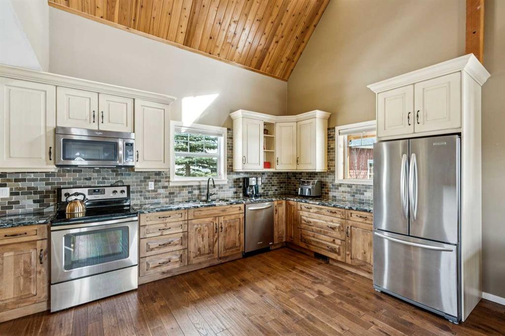Nestled alongside community pathways and lush green space, this exceptional cabin property offers the perfect blend of rustic charm and versatile living. The primary cottage features a spacious main bedroom, a second informal bedroom, and two full bathrooms ideal for relaxed, comfortable living surrounded by nature. A standout feature of this listing is the beautifully finished suited garage, complete with an additional bedroom and two bathrooms, offering incredible flexibility for guests, or extended family stays. What truly sets this property apart? A rare basement level below the suited garage, one of the only properties in the community to offer this coveted bonus space. Whether you envision a private home gym, recreation rooms, or generous storage, the possibilities are yours to explore. Steps from scenic walking paths and green space, this is cabin living at its finest and at a price that won\'t last long.