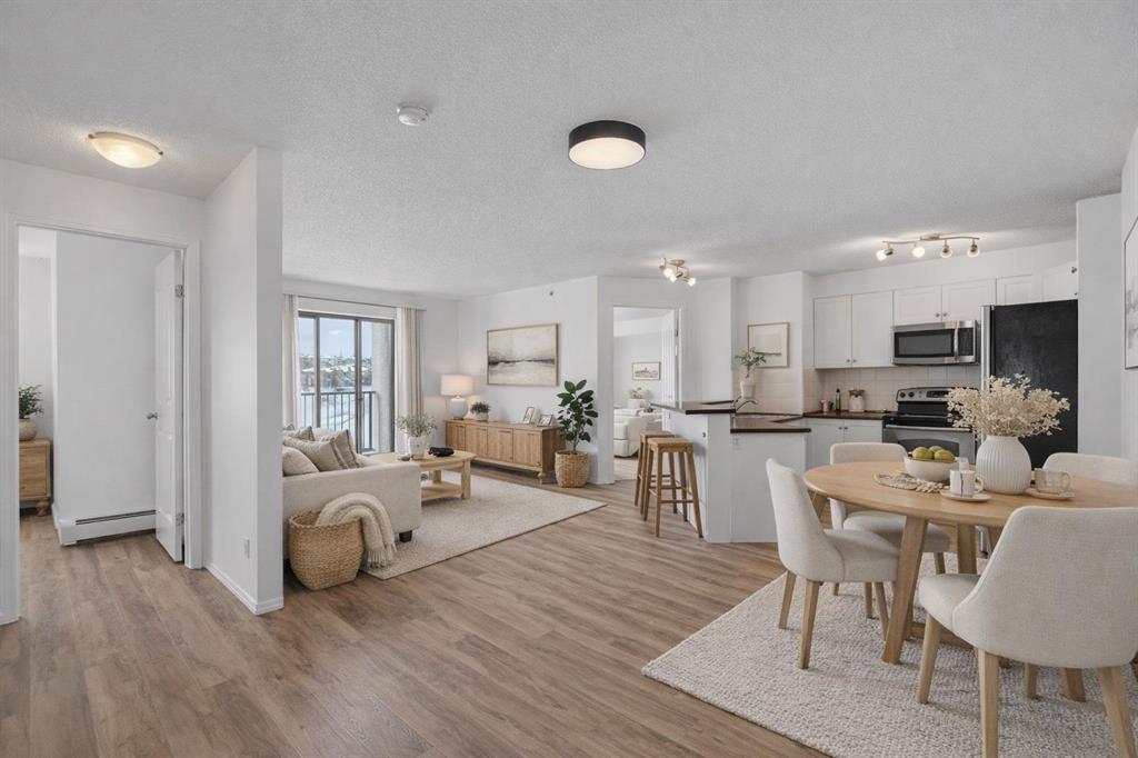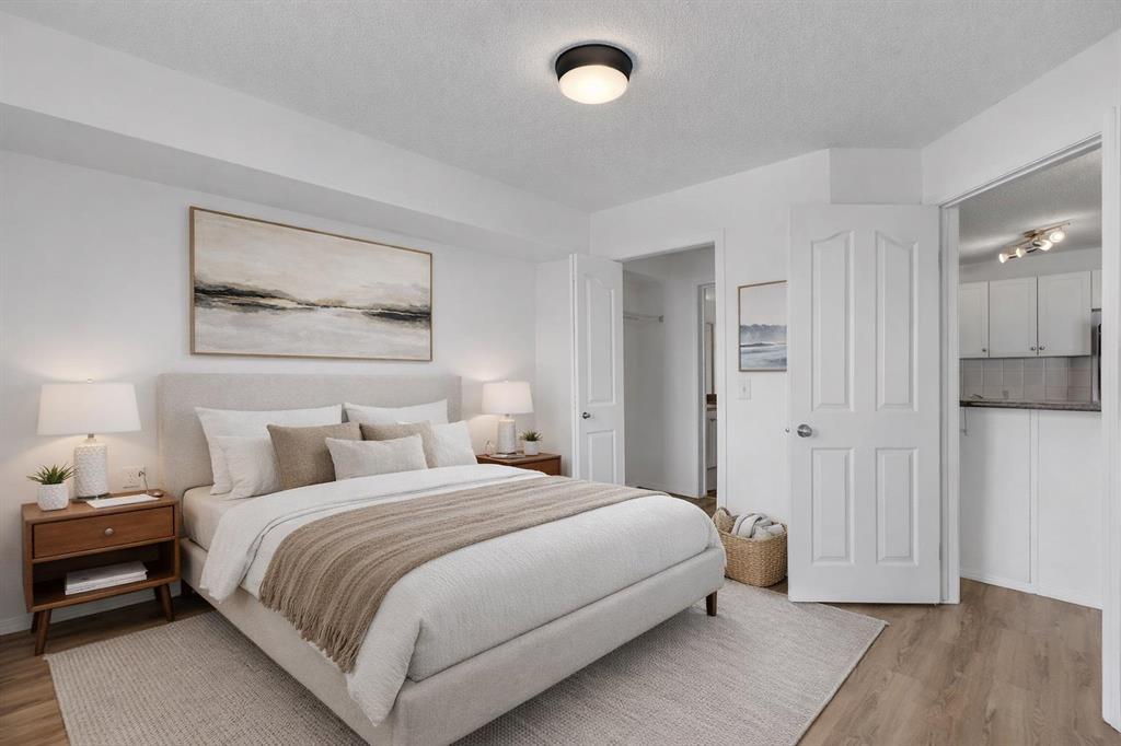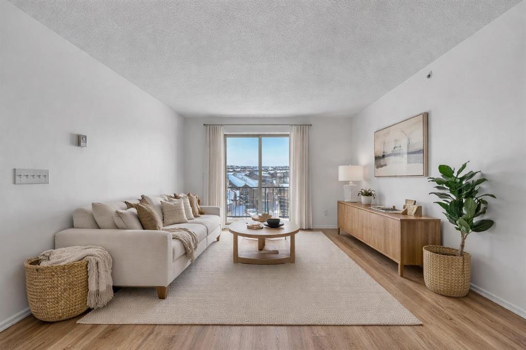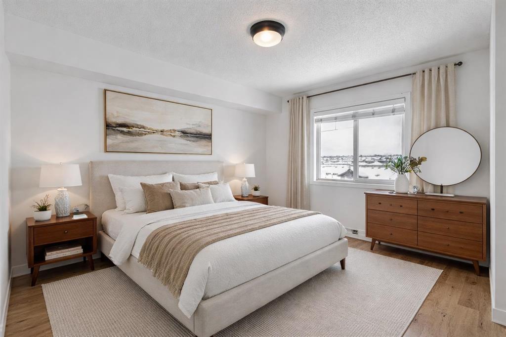 Perched on the top floor in the ever-popular community of Panorama Hills, this beautifully updated condo offers an inviting blend of comfort, style, and everyday convenience. Spanning approximately 850 sq ft, the thoughtfully designed layout strikes a perfect balance between open-concept living and well-separated bedrooms, creating a space that feels both connected and private. With LVP flooring and neutral paint tones, the home presents a clean, modern feel from the moment you step inside. The kitchen is both practical and polished, featuring generous counter space, a raised breakfast bar ideal for casual dining or hosting, and a full stainless steel appliance package. The west-facing orientation fills the home with natural light throughout the afternoon and evening, offering beautiful sunset views from both the living area and the oversized covered balcony. Whether you\'re unwinding after a long day or hosting friends for a summer BBQ, this outdoor space is a true extension of the home. The primary bedroom is a comfortable retreat, complete with a walk-through closet and a private 4-piece ensuite. A second bedroom, also west-facing, is bright and versatile—ideal for guests, a home office, or additional living space. In-suite laundry with extra pantry and storage options adds to the home’s everyday functionality.