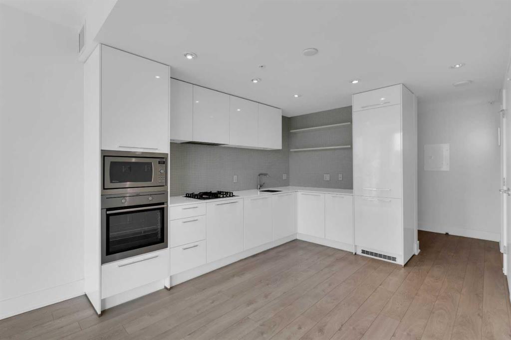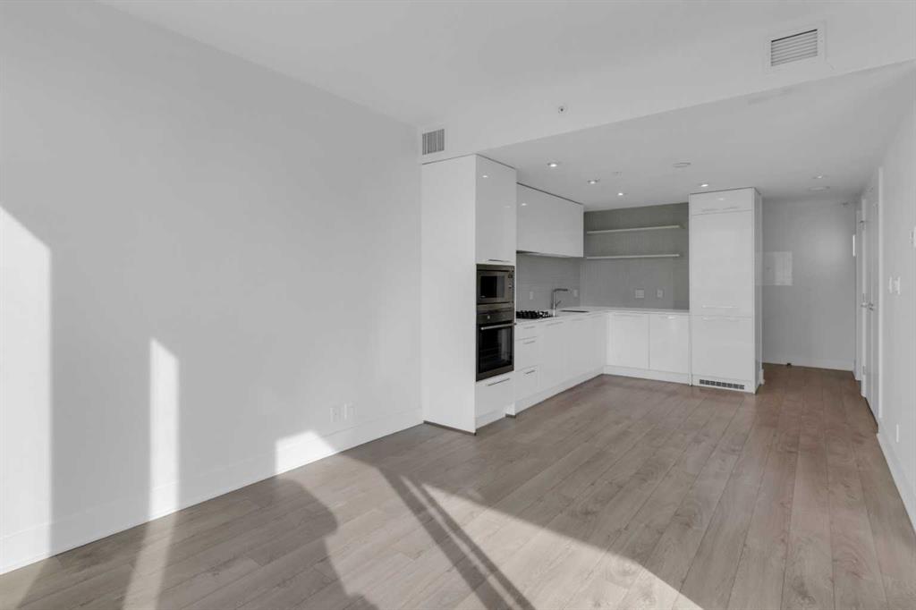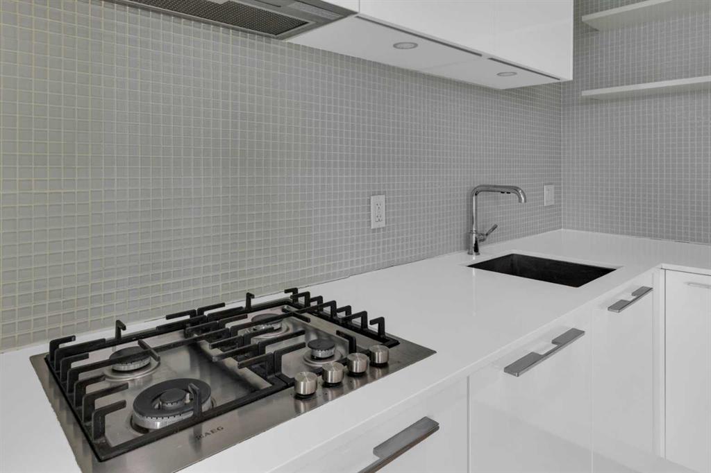 Welcome to Mark on 10th. This luxury 1-bedroom, 1 bath residence is situated on the 7th floor and showcases a bright, open-concept design. The stunning all-white Nobilia kitchen features quartz countertops and sleek built-in AEG appliances, complemented by 9’ ceilings and expansive glass throughout. The spacious living room opens onto a south-facing balcony with breathtaking views and away from the train noise. The well-designed layout is complete with a generous bedroom, 4-piece bathroom, and convenient in-suite laundry. Additional highlights include central air conditioning, a heated underground corner parking stall, and a separate storage locker.