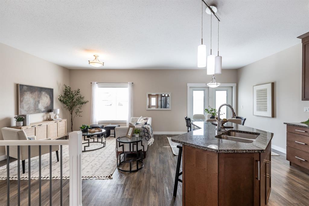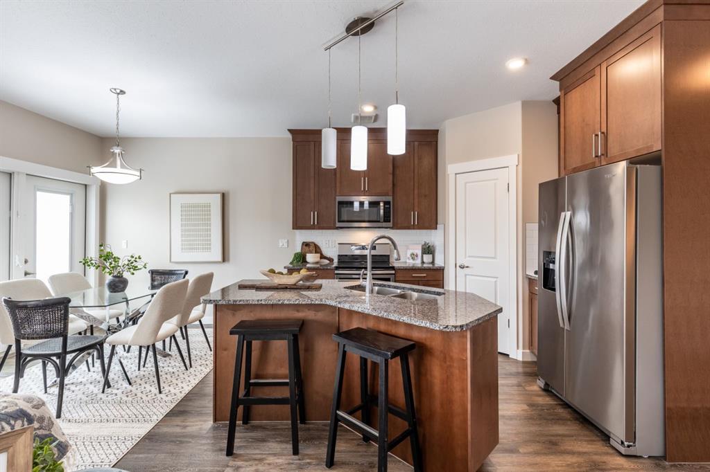 The open-concept main floor is designed for both everyday living and entertaining, highlighted by a stunning kitchen with ceiling-height maple cabinetry, granite countertops, stainless steel appliances, and a spacious walk-in pantry. The primary bedroom offers a walk-in closet and a private 3-piece ensuite, creating a comfortable retreat. You’ll also find a second bedroom, a full bathroom, and convenient main-floor laundry all on this level.