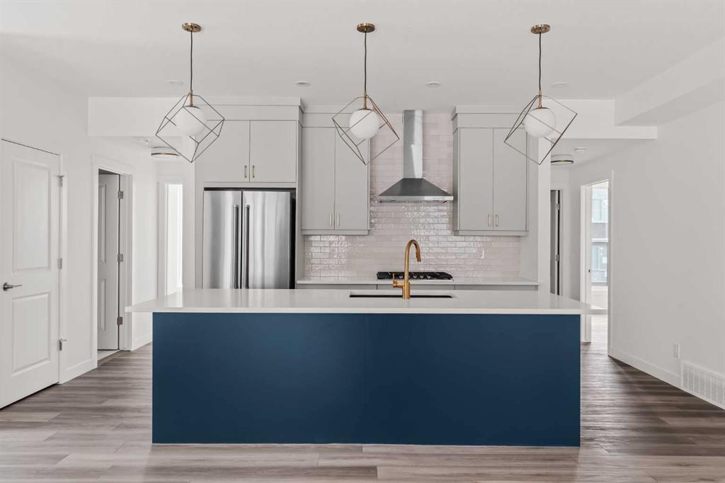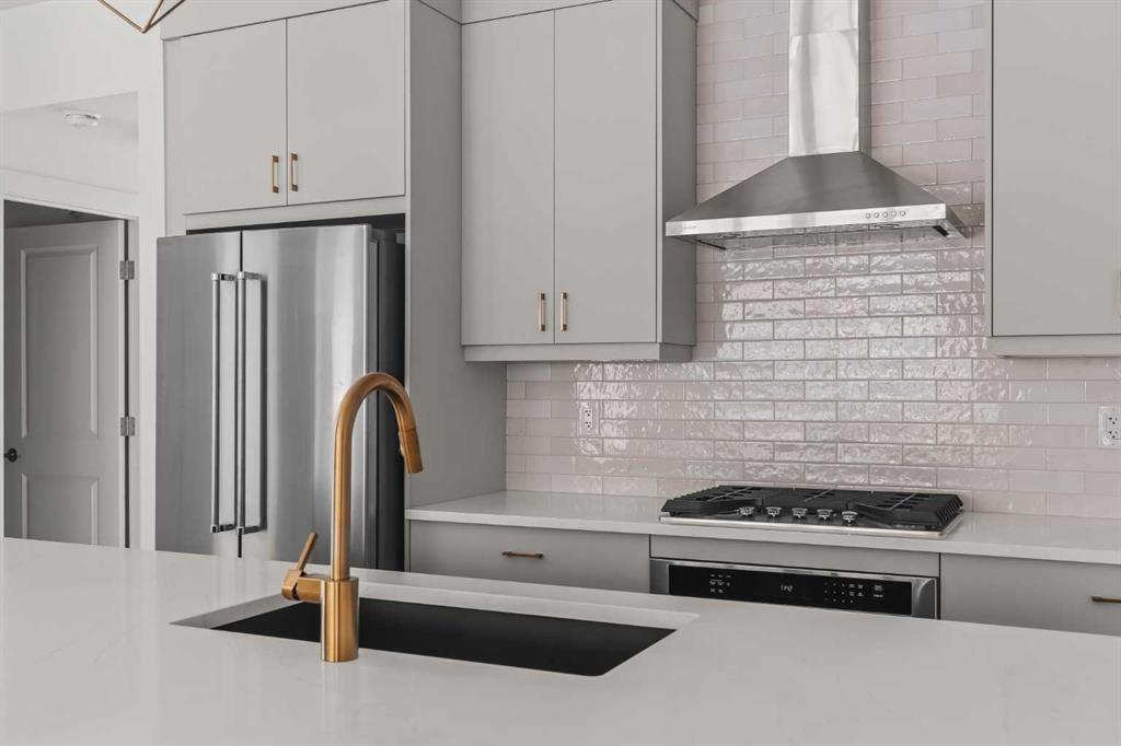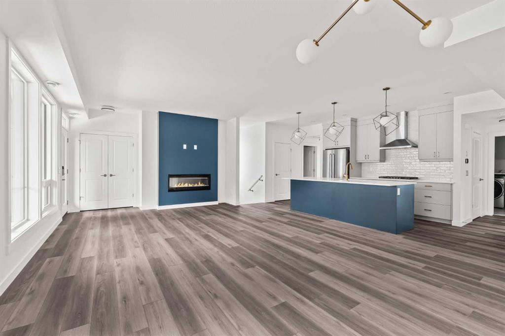 The Regent at Crown Park: the VERY LAST brand new opportunity for this bungalow-style townhouse within Calgary\'s coveted inner-city development. This beautifully executed END-UNIT bungalow-style townhome offers true single-level living without compromise. Designed with downsizers in mind, this rare floor plan delivers the ease of a bungalow lifestyle while preserving what matters most: space, storage, and an oversized private double attached garage - all within a beautiful and bright space designed for entertaining. Ideal for travelers or those seeking simplicity, this offers maintenance-free, lock-and-leave living at its best: no landscaping or snow removal required. This thoughtfully designed home offers 1,348 sq. ft. of well-planned living space on a single level, with an additional lower level featuring extensive storage / hobby room and direct access to the oversized double garage. At the heart of the home, a stunning open-concept living space is designed for both everyday comfort and effortless entertaining. The central kitchen seamlessly connects to the living and dining areas, and a full wall of southwest-facing windows fills the home with natural light. Timeless finishes include warm-toned flat-panel cabinetry with an accent island, white quartz countertops, and a premium built-in appliance package featuring a gas cooktop, built-in oven, and chimney hood fan - ensuring the kitchen is as functional as it is beautiful. A striking central fireplace anchors the great room, creating a warm focal point and inviting gathering space, while the generous dining area easily accommodates a full-size table and buffet. Privately positioned at the rear of the home, the primary retreat offers a quiet, secluded escape, complete with a large walk-in closet and a spa-inspired ensuite featuring dual vanities and a tiled walk-in shower with 10mm glass. A centrally located laundry room with upper cabinetry separates the primary suite from the secondary bedrooms. Two additional bedrooms and a full bathroom provide flexibility for guests, a home office, or a media room, ensuring the home adapts effortlessly to your lifestyle while maintaining strong long-term resale appeal. The lower level continues to impress with an oversized utility space (approx. 17\' x 7\') perfect for additional storage / hobby space. These features, along with direct access to the oversized double attached garage, are rarely found in a bungalow-style townhome. Outdoor living is equally exceptional with a private, covered southwest-facing patio spanning over 26 feet. Overlooking the central park and complete with a gas line, hose bib, and A/C rough-in, this design offers comfort today and flexibility tomorrow. Situated just minutes from downtown and surrounded by established amenities, Crown Park offers the confidence of a mature community paired with the comfort of a brand-new home. This is the final opportunity - don\'t wait!