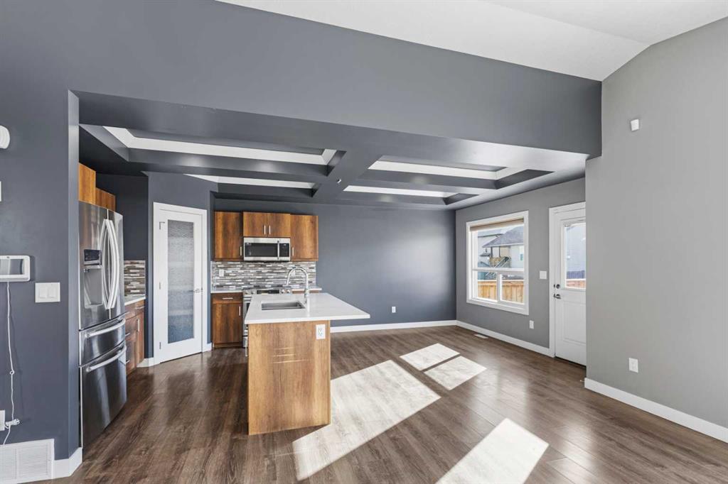Beautifully maintained 2019 modified bi-level offering a bright, modern feel throughout with fresh paint and clean, consistent finishes. The main level features an open-concept layout filled with natural light and highlighted by a stunning coffered ceiling that adds depth and character, anchored by a stylish kitchen complete with quartz countertops, a large island, and updated appliances. Two bedrooms and a full 4-piece bathroom finish off the main level, while the living and dining areas flow seamlessly with direct access to the back deck, creating a great setup for both everyday living and entertaining. Upstairs, the private primary retreat offers a quiet escape with its own ensuite and walk-in closet. Downstairs is partially finished with framing and electrical already completed, giving you a strong head start to add your own finishing touches and build equity. Complete with a double attached garage and located in a desirable neighbourhood, this home offers the perfect blend of modern design, functional layout, and future potential. Book your viewing today!