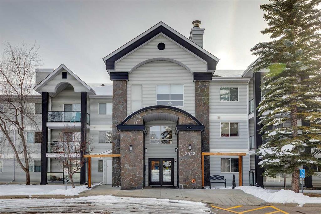 Welcome to Unit 106 in the Valhalla Ridge complex, perfectly situated in the established community of Queensland — just moments from the entrance to Fish Creek Park, where kilometres of walking and biking trails wind along the Bow River.