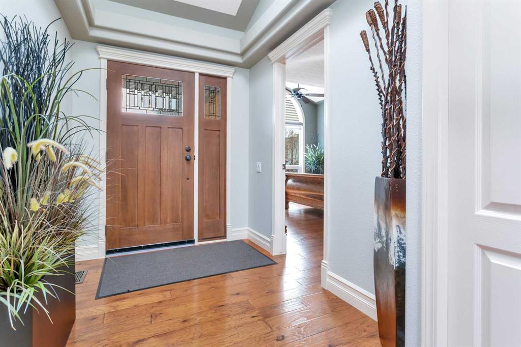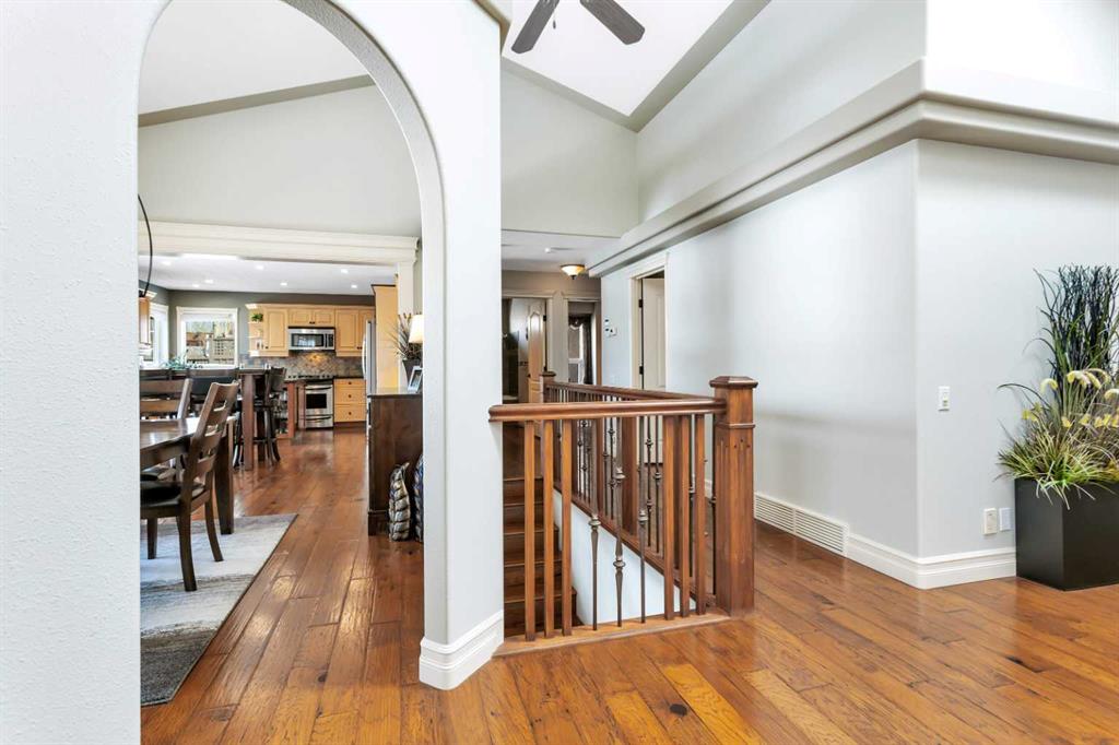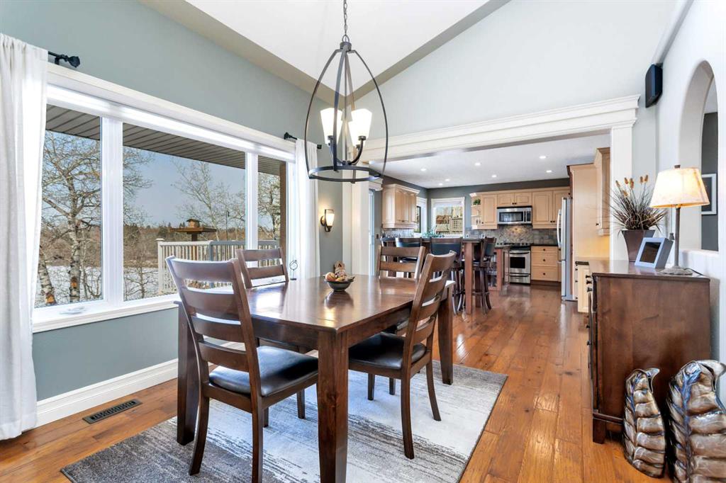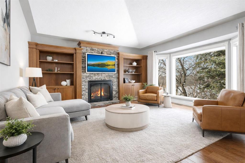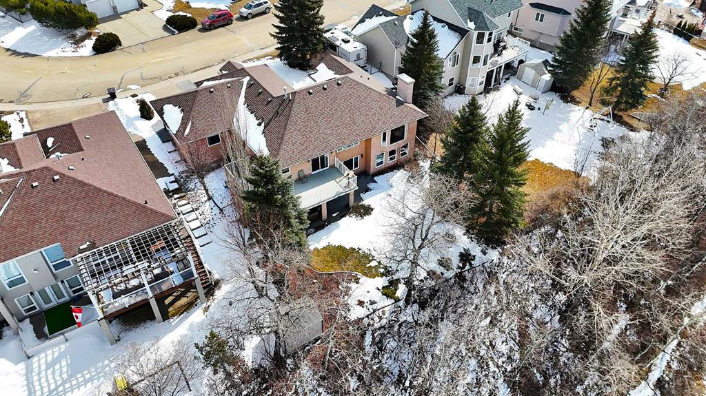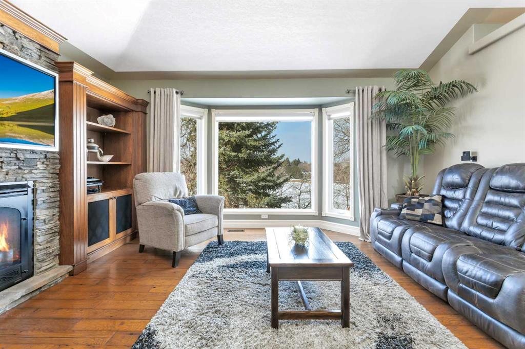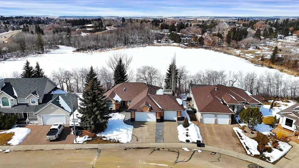 Welcome to one of Lacombe’s most sought-after locations in The Lakes, where this FULLY FINISHED WALKOUT BUNGALOW with TRIPLE GARAGE backs directly onto the water with NO NEIGHBOURS behind, offering beautiful lake views, privacy, and frequent wildlife right from your backyard. This 5 bedroom, 3 bathroom home is located on a QUIET CRESCENT with long-term neighbors and minimal traffic, and provides over 3,000 sq ft of well-designed living space. Inside, you’ll find large windows throughout flooding the home with NATURAL LIGHT, engineered HARDWOOD floors, custom railings, and VAULTED CEILINGS. The kitchen is set up perfectly for everyday living and entertaining with GRANITE countertops, an ISLAND, a large built-in EATING BAR with additional seating, under and over CABINET LIGHTING, and a separate dining area. The main living room features custom built-ins surrounding a cozy gas fireplace and showcases incredible views of the water. The primary suite accommodates large furniture, includes a walk-in closet, 3-piece ensuite, and beautiful east-facing morning sunlight. Downstairs offers bright WALKOUT living with a spacious family room, IN-FLOOR HEATING, and a second gas fireplace, along with a WET BAR and a versatile flex space currently used as a gym, previously set up for a pool table, and easily adaptable into a 6th bedroom if desired. Outside, enjoy an OVERSIZED MAINTENANCE-FREE wraparound deck with natural gas, covered lower patio ideal for a hot tub, beautifully professionally landscaped low-maintenance yard, and two sheds including one with power. Additional features include AIR CONDITIONING, POT LIGHTING throughout, newer hot water tanks, UPDATED PEX PLUMBING, laundry room with sink, alarm system, and a fully finished TRIPLE GARAGE with IN-FLOOR HEATING and hot and cold taps. Located within walking distance to elementary, junior high, and high schools, parks, pathways, and Cranna Lake just across the street for year-round enjoyment including skating in the winter, plus access to an extensive trail system. This is a rare opportunity to own a solid, high-quality home in a premium location that offers both everyday comfort and long term value.