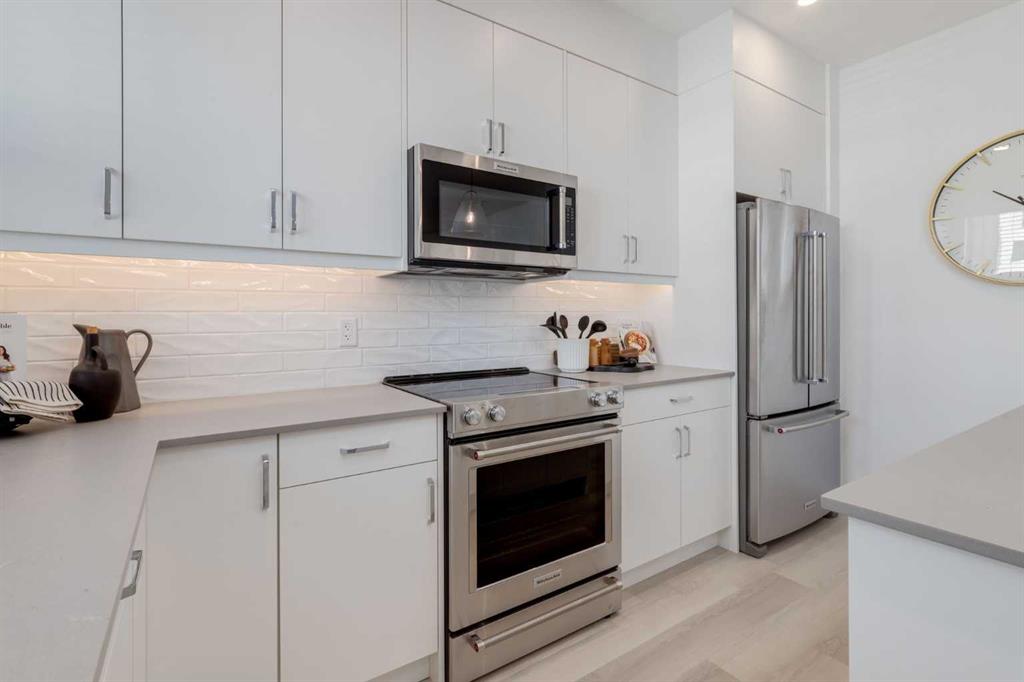 Your new PINE end unit offers 1,613 sq. ft. RMS (1,402 sq. ft. builder measurement) of thoughtfully designed living space, featuring 2 bedrooms, 2.5 bathrooms, a formal entry, second floor laundry, chef inspired kitchen, two large front-facing patios, and a private office area. The home is completed with a double attached garage and premium finishes including quartz countertops, designer tile, stainless steel appliances, luxury plank flooring, central A/C, and contemporary fixtures.