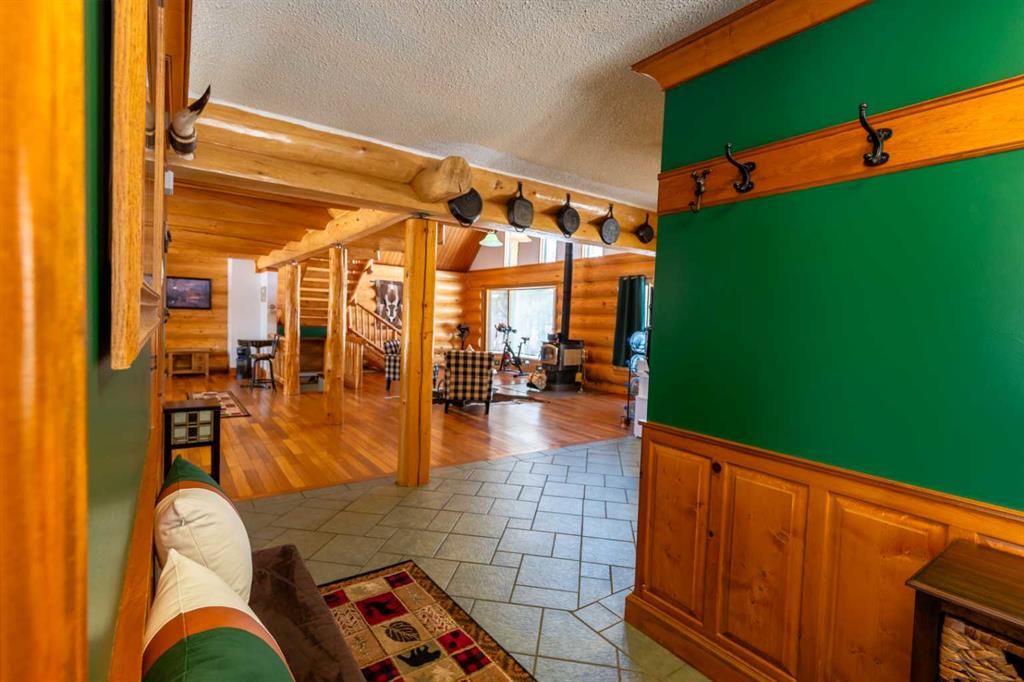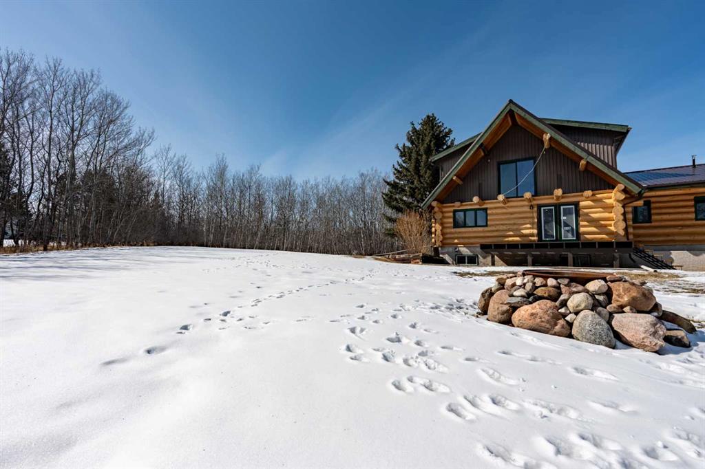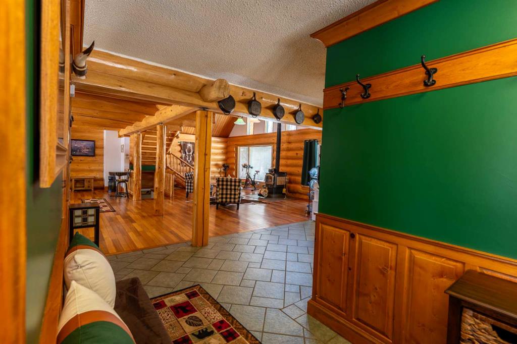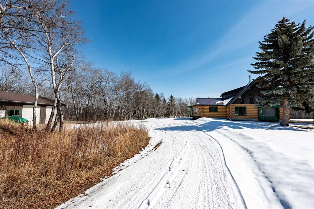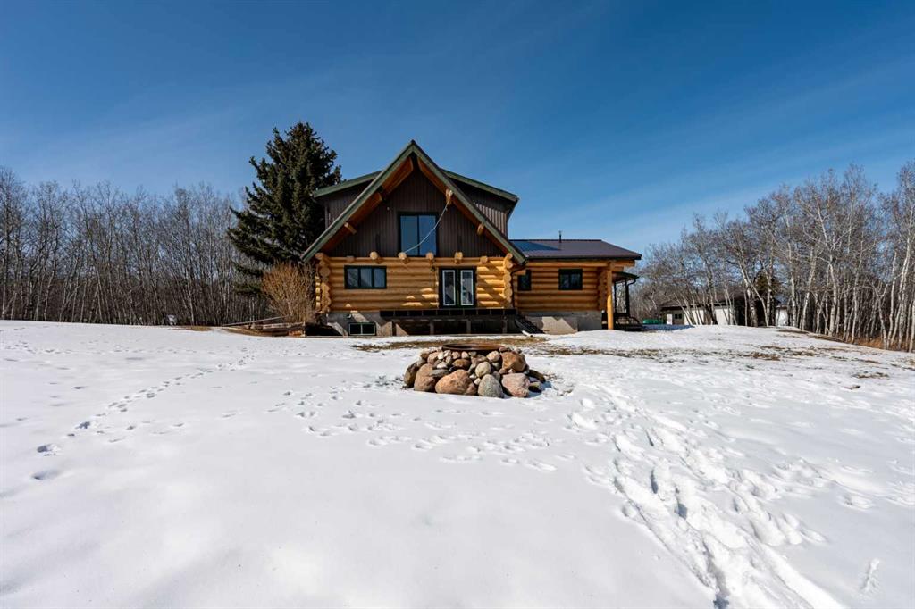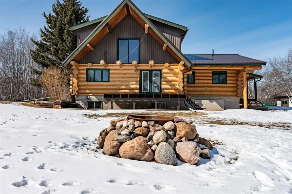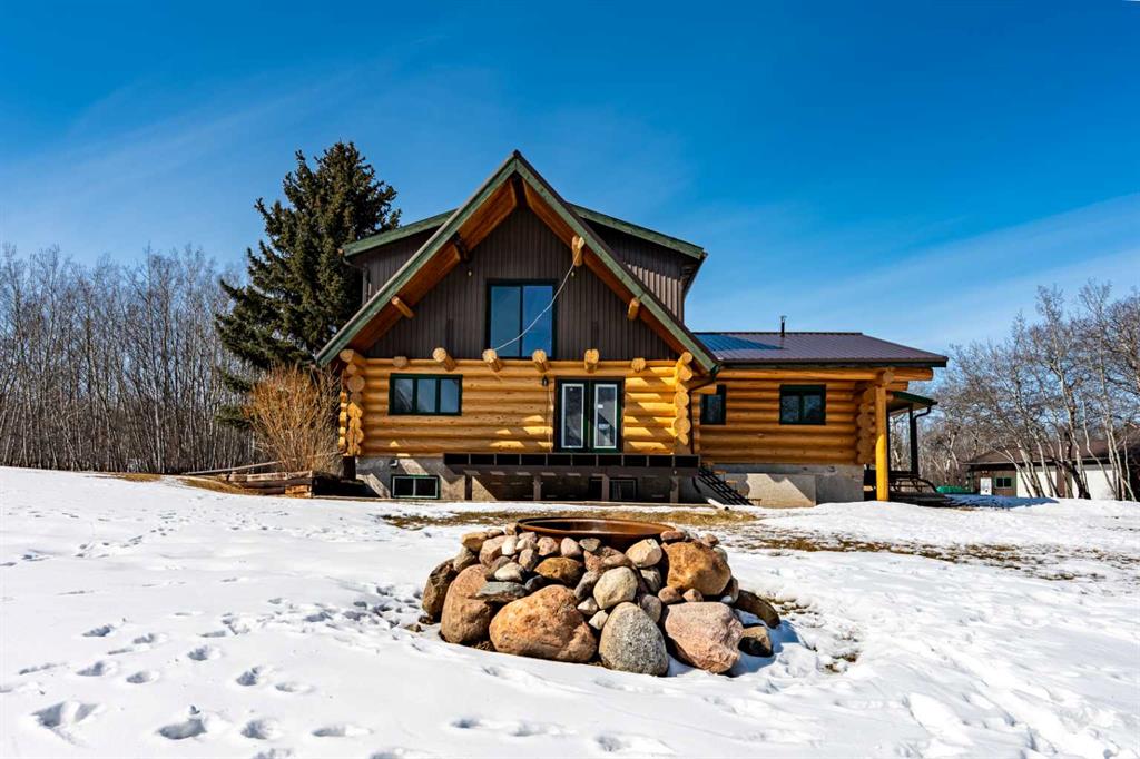 Welcome to Ascot Estates—where refined country living meets timeless rustic charm on 3.39 beautifully maintained acres. This extensively refinished log home offers a warm, inviting atmosphere with a thoughtful, executive-style layout designed for both comfort and entertaining. The main living spaces showcase the natural beauty of the wood construction, creating a true cabin feel without compromising on quality or function. With a spacious primary suite occupying the upper level and an additional bedroom space in the fully developed basement, this home is perfectly suited for those seeking privacy, simplicity, and elevated living. Significant upgrades have already been completed, including refreshed exterior logs, updated bathrooms throughout, new decking for outdoor enjoyment, and a fully improved workshop featuring new insulation and drywall on all four walls. A new water softener installed in spring 2025 adds to the home’s efficiency and comfort. The property is well-equipped for acreage living, and all major appliances are included—featuring a washer and dryer (2023), refrigerator (2024), along with dishwasher, cooktop, and oven. For buyers seeking a turnkey opportunity, additional the following items are included at the present listing price. These include a riding lawnmower, gas lawnmower, Stihl weed eater and leaf blower (all new in 2024), along with select furnishings such as a hutch and buffet, plus a coordinated set that includes a kitchen table and chairs, coffee and end tables, TV, and TV console (new in 2023).A rare opportunity to own a beautifully updated log home in one of the area’s most sought-after acreage communities—offering space, privacy, and a lifestyle that’s hard to match.