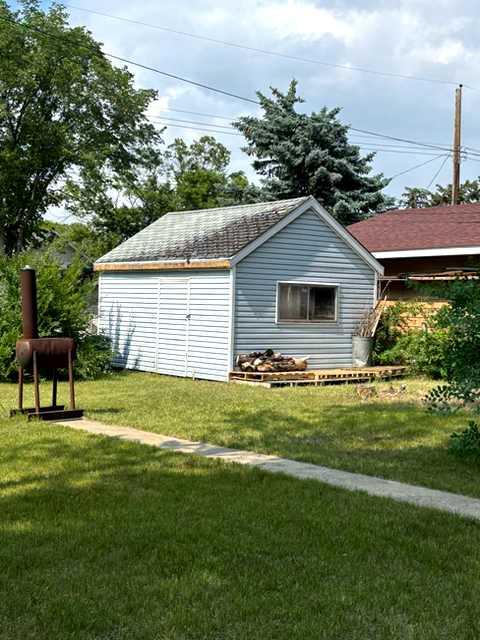 Excellent Investment property or starter home. This charming 3 bed 1 bath home has had some extensive work over the past few years. New energy efficient furnace (2016) some New windows ( 2016), New Hot water tank (2020), New flooring in kitchen (2020) New flooring though out the rest of the home ( 2018) New oak cabinets in kitchen (2020) New shingles on the south side of the home summer of 2025. The large kitchen has lots of space for cooking as well as entertaining. Huge dinning room and living room area and the home also boast main floor laundry. The laundry room has lots of room for storage as well as hanging clothes to dry. Upstairs is home to 3 large bedrooms with large walk in closets in two of the the rooms. The yard is nicely landscaped with trees and lawn. A large shed in the back yard provides ample storage. Lots of space in the backyard to build a garage. Hardisty is a thriving, welcoming community with so much to offer such as down town shopping, a wonderful golf course and walking trails to enjoy the beautiful scenery of the Battle River and Hardisty Lake.