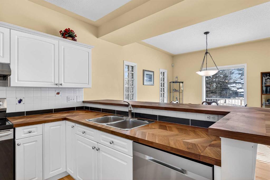 Additional features include a double-attached garage, double driveway, ample visitor parking, and recent updates such as newer shingles and fresh interior paint. The location offers unmatched convenience with nearby shopping, restaurants, a movie theatre, schools, walking paths, and quick access to Deerfoot Trail, Stoney Trail, Shaganappi Trail, and 14th Street, as well as Calgary International Airport.