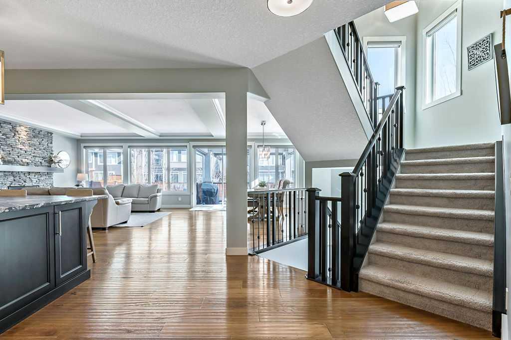 Welcome to Auburn Bay, one of Calgary’s most sought-after Lake Communities, offering year-round lakeside living. This immaculate property offers a blend of luxury, convenience, and a vibrant community lifestyle, boasting over 4,400 square feet of developed living space and is situated on a desirable corner lot, backing onto one of the community’s semi-private lake pathways. The gourmet kitchen is a chef\'s dream, featuring leathered granite countertops, custom stainless steel range hood, full-height cabinets, a butler\'s pantry, and high-end stainless steel appliances. Filled with natural light, the living areas are spacious and inviting, great for entertaining. The home also includes central A/C for year-round comfort. This elegant and extensively upgraded home includes 3+1 bedrooms and 3.5 bathrooms. The large primary bedroom features a double-sided stone fireplace and a luxurious ensuite with a stand-alone soaker tub and glass/tile shower. The washer, dryer and 75-gallon hot water tank were replaced in 2024. This home features a beautiful aggregate driveway leading to a spacious triple garage with epoxy flooring and convenient storage racks. Professionally landscaped with an abundance of trees, the property includes a full irrigation system and an artificial turf dog run for easy maintenance. Enjoy the outdoors on the covered deck, complete with roller shades, perfect for all-season use. The Homeowners Association offers year-round activities and exclusive lake access, enhancing your living experience. Walking distance to multiple schools, shopping, dining and more. Just minutes to South Health Campus, YMCA, various restaurants, and quick access to Stoney Trail and Deerfoot.