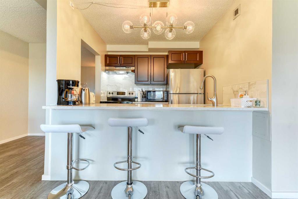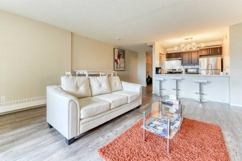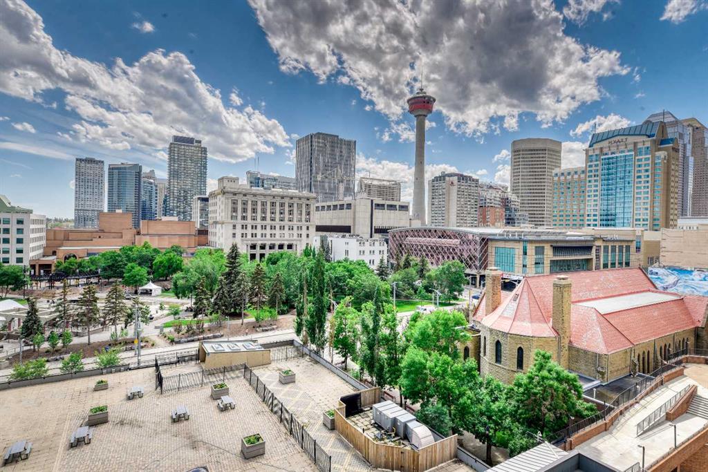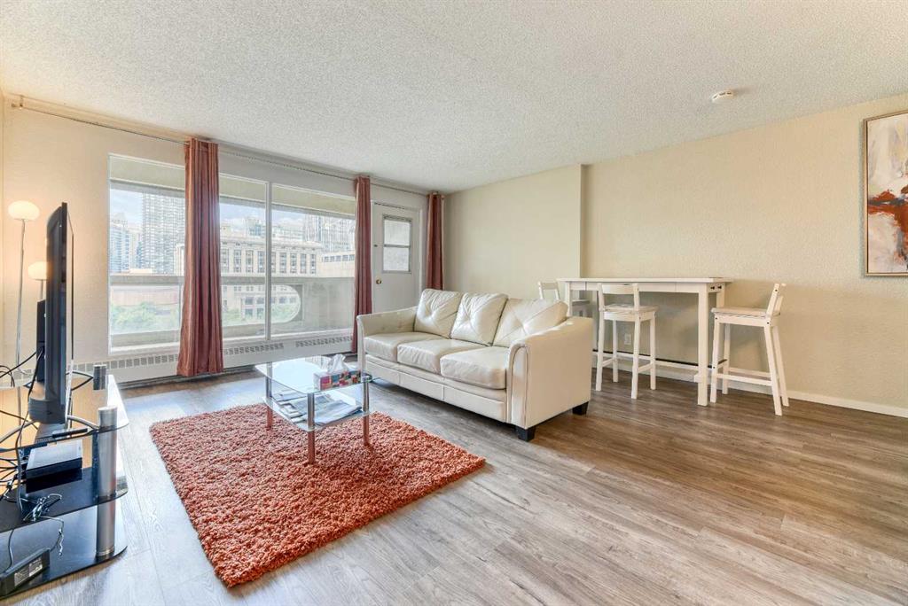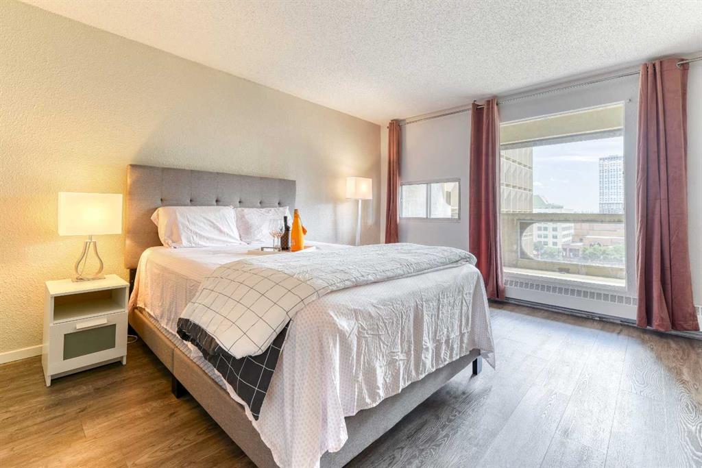 Newly renovated ***This downtown one-bedroom condo is a great find. South-facing balcony with great view towards the Calgary Tower. Rocky Mountain Court . close to all the amenities of downtown, parks, steps to the LRT for easy access everywhere in the city. Walking distance to the Bow River and Princess Island Park. Concrete building. Open concept from the kitchen to the living room area. The kitchen features lots of cabinet space, 4 pce bath and a large storage room in the unit. Assigned underground parking stall. Enjoy the sauna, exercise room, common area outdoor patio, indoor post boxes, and 3 elevators. Condo fees include everything except electricity. Great for investor or first-time buyer that works downtown. This is a must to see.