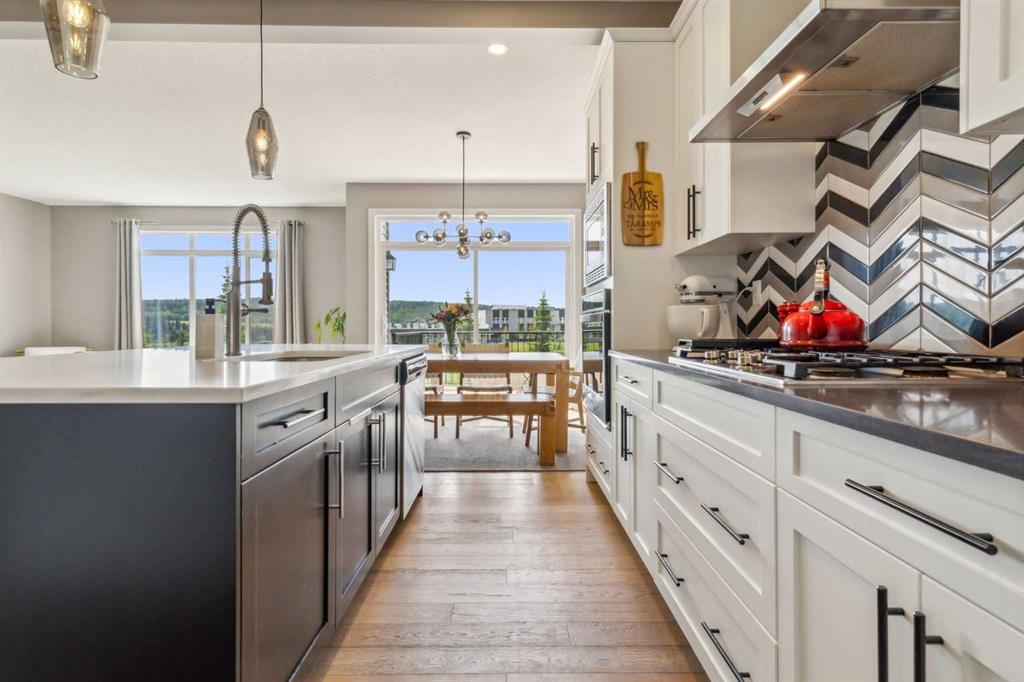 Sunset Ridge voted Cochrane\'s Best Neighbourhood 2025!!!! Welcome to this stunning, two-storey walkout home, perfectly situated, backing onto expansive green space and Ranche View School (elementary and junior high) school yard, offering stunning mountain views to the west and to the east a beautiful forest hillside with cows occasionally grazing in the pasture. The backyard gate opens up to the vast school playground, allowing students to lunch at home and - running out the back door minutes before the bell rings! With a bright open-concept main floor, soaring ceilings, and large south-facing windows, this home is filled with an abundance of natural sunlight throughout the day. The main level features a spacious office with elegant French doors - ideal for working from home. The large functional kitchen with entertainment island, white cabinetry, quartz countertops, a convenient walk-through pantry and stainless appliances, make this THE spot for hosting events! The spacious living room with gorgeous fireplace wall flows into the lovely dining area with sliding glass doors which lead out to a large elevated deck, perfect for entertaining or simply enjoying the peaceful surroundings. Upstairs, you\'ll find three generously sized bedrooms; including a luxurious primary suite with a 5-piece spa-ish ensuite featuring double vanities, a large soaker tub, a stand-alone shower and a spacious walk-in closet. An additional 4-piece bathroom is shared by two spacious bedrooms and a large bonus room provides plenty of space for family living and relaxation, games night and late night TV. The fully developed walkout basement offers incredible versatility, featuring a theatre room or optional fourth bedroom, and an additional 4-piece bath. Currently used as a gym, the walk-out offers large windows with a beautiful view to enjoy while on the treadmill. Step out to a gorgeous patio and landscaped back yard. Enjoy breathtaking views in every direction and \"the peace\" . A stunning home delivering the charm of country living with all the conveniences of Cochrane - AND - less than an hour to the mountains!!!! This exceptional home truly offers the best of both worlds; tranquility, space and modern comfort in a highly desirable location. Shows 10/10! Book your viewing today!