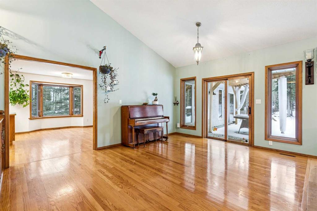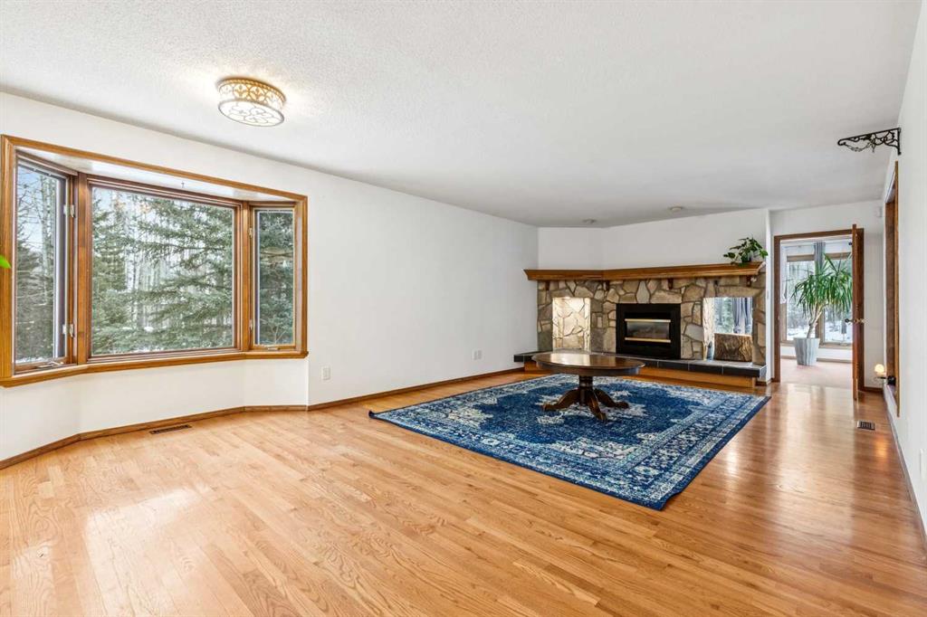 OPEN HOUSE SAT APRIL 4 2-4PM | Set on two fully treed private acres backing directly onto trail systems leading into Kananaskis. Enjoy a stroll with natural rivers, streams, and quiet forests. This extraordinary bungalow offers over 6000 square feet of solid, enduring construction allowing you the opportunity to own ample space and quality that cannot be recreated at this price point. Your gigantic main living area draws the eye upward with high vaulted ceilings. Natural oak floors throughout can be reimagined in any stain, and the entertainment area has been designed with a sunken floor to add dimension while you are warmed by the Napoleon wood burning fireplace - one of three fireplaces (2 gas) in the home. The large wood clad windows and sliding doors draw the beauty of the serene landscape in with a color palette that blends with the natural beauty surrounding the property. This solid home has been thoughtfully designed and built with extended cottage overhangs and stone exterior to keep the elements out and your warmth inside in winter, paired with beautiful bay windows to draw in natural air cooling during summer months. All oversized, recently upgraded appliances are ready for your family including chef grade dual-wall oven, fridge, dishwasher and ample laundry walk-in ready to keep the family fun tidy with ease. The home has been upgraded with 3 new, zoned, gas-fired furnaces ensuring individual comfort in the dining, family and sleeping areas. With the home\'s natural flow, enjoy entertaining in the many living areas combined with a brand new tucked away wooded hot spring inspired master suite with spa that could easily be doubled in size with the adjacent bedroom/den. Walk out into nature from both the east and west wings of the home from one of 3 glass patio doors giving access to the enormous 700 sq/ft deck, complete with covered gazebo and pergola. 2 oversized double garages combined for a massive ~1200 sq/ft of storage and shop space. Be a part of K-country living and check out Elbow Falls or the world class hiking, biking and skiing trails of West Bragg Creek. Your reimagined country estate awaits! Make sure to ask your Realtor to forward the floor plan, full list of FEATURES and IMPROVEMENTS, RPR and all supplemental information that can be found in supplement documents.