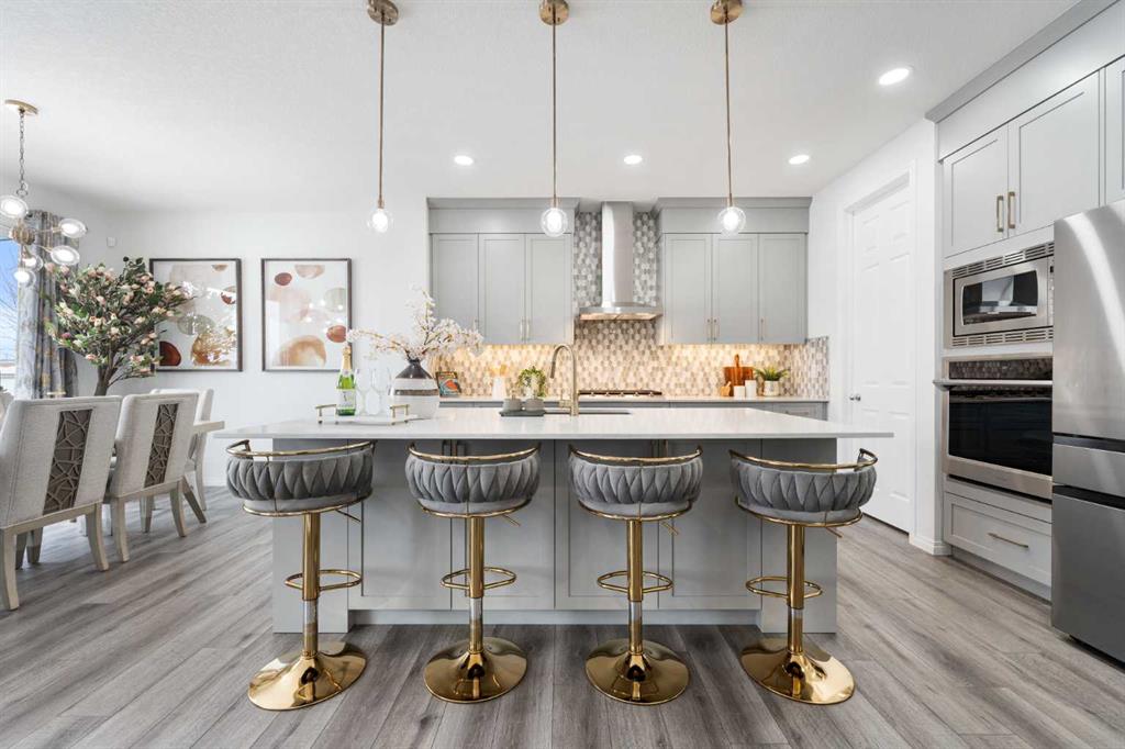 From the moment you enter, you are welcomed by soaring 9-foot ceilings and impressive 8-foot doors that create a grand, open atmosphere. The thoughtfully designed main floor showcases office/flex room, Powder room and a seamless open-concept layout ideal for both everyday living and entertaining. The chef-inspired kitchen is beautifully appointed with built-in appliances, premium finishes, and sophisticated gold fixtures that add a touch of modern luxury throughout the home.
