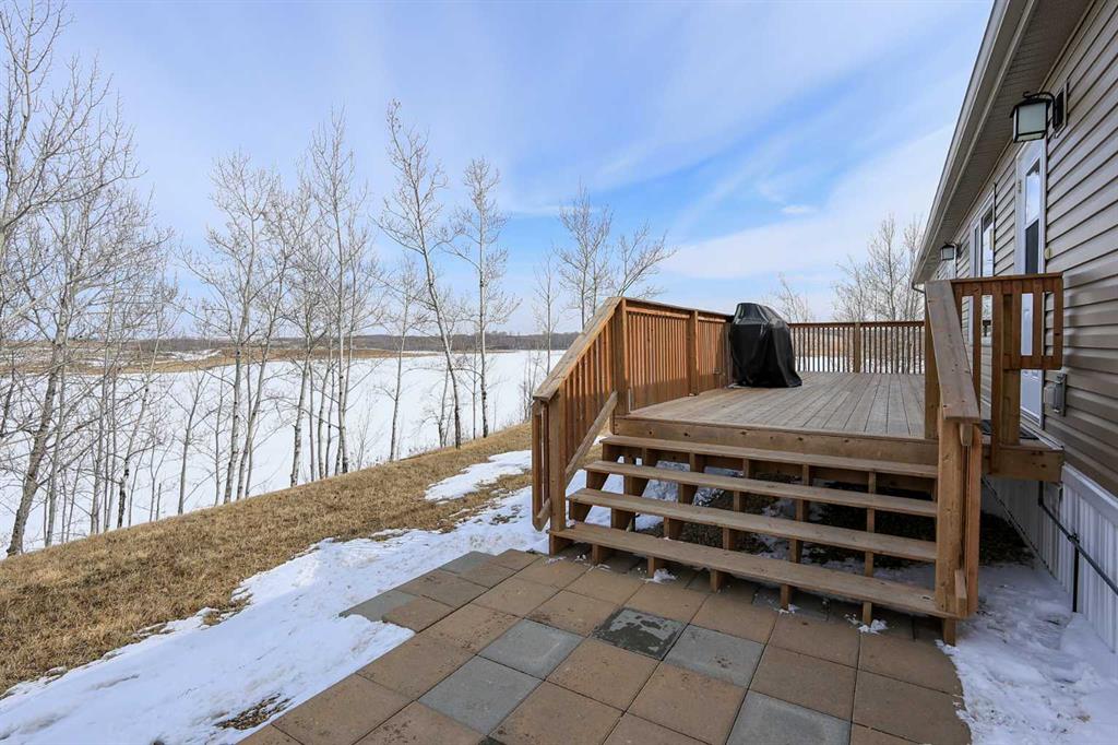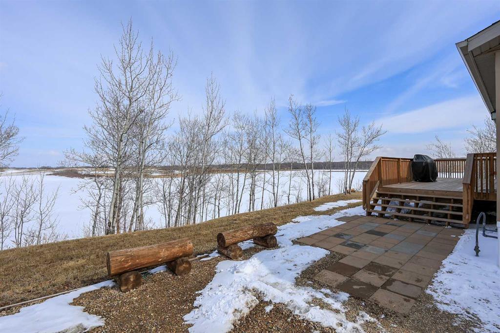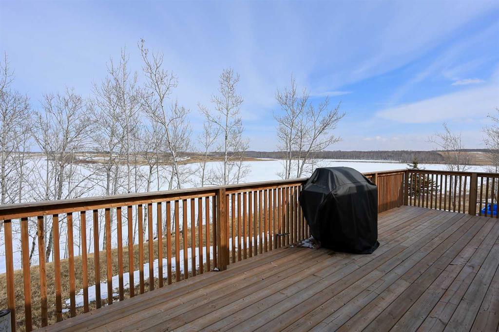 8.8 ACRES OVERLOOKING HORSESHOE LAKE ~ 3 BED, 2 BATH W/1280 SQ FT ON ONE LEVEL ~ HEATED 54\' X 30\' HEATED SHOP W/MEZZANINE & FULL BATHROOM ~ Beautiful lake views welcome you to this well cared for property ~ Expansive east facing deck leads to the foyer and open concept main living space with vaulted ceilings and vinyl plank flooring throughout ~ The living room has a large picture window with lake views and a cozy wood burning fireplace ~ The kitchen offers warm stained cabinets, ample counter space, island with an eating bar, and a west facing window above the sink ~ Easily host large gatherings in the dining room with garden door access to the deck ~ The primary bedroom can easily accommodate a king size bed, has a large walk in closet and a bright 4 piece ensuite ~ 2 additional bedrooms with ample size closets are conveniently located next to the 4 piece main bathroom ~ Large laundry room with space for storage has a second entrance with a west facing deck ~ 54\' x 30\' heated shop has a high ceilings, finished hobby room with a closet, a full 4 piece bathroom, and a mezzanine ~ Outside this peaceful property features rolling hills and mature trees, a 3 tiered garden, rose bush, rhubarb and strawberries, plus a cleared walkway and driveway to the lake ~ Located close to Alix with easy access to Red Deer ~ Pride of ownership is evident!