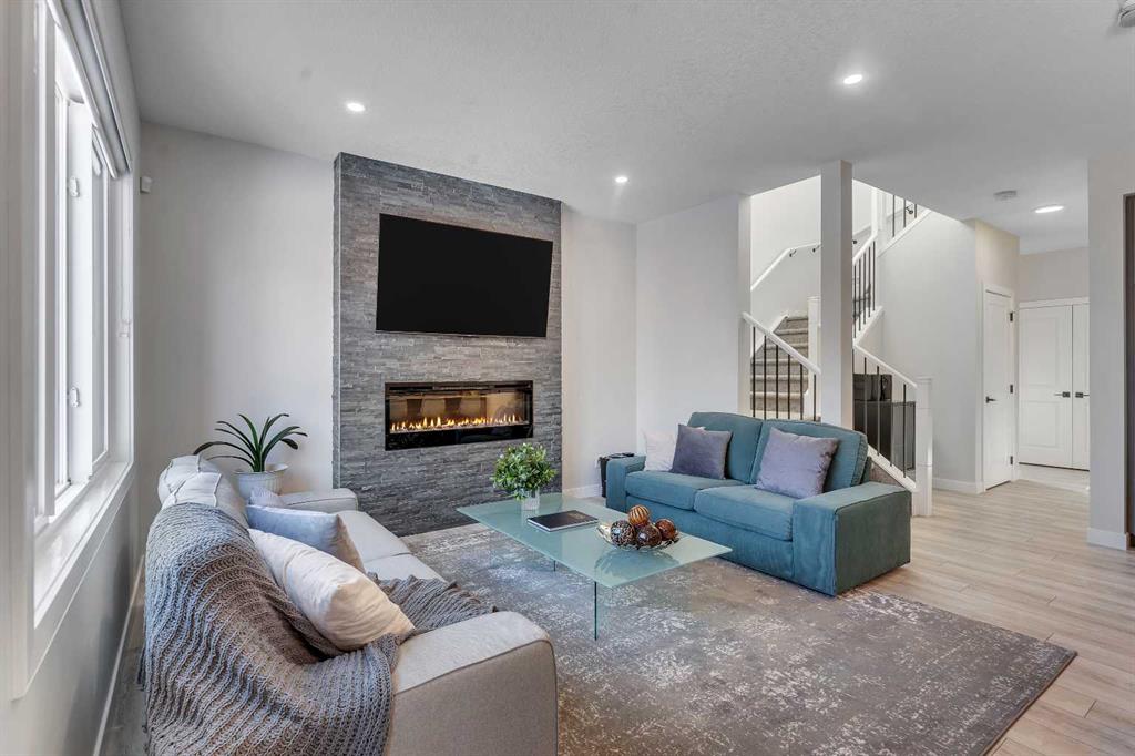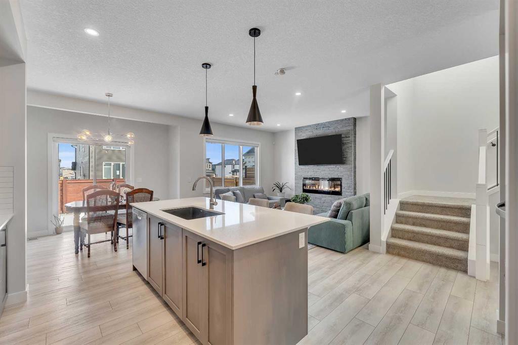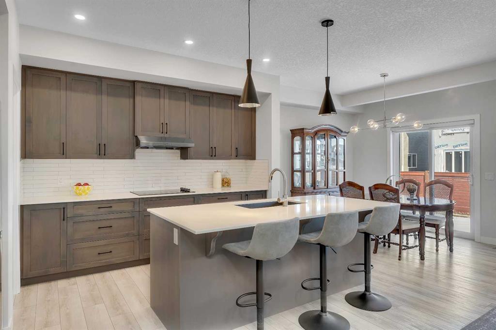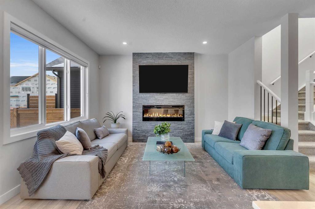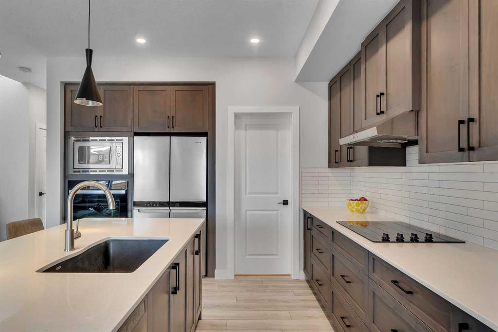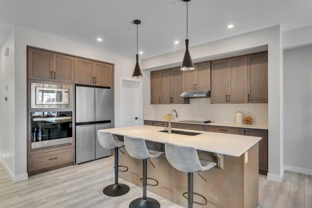 Step into this beautifully upgraded Shane Homes 2023 build, where thoughtful design and quality finishes come together. The open-concept main floor is bright and welcoming, with 9\' ceilings and luxury vinyl plank flooring, and an inviting colour palette is continuous throughout the home. At the heart of the home is a standout, upgraded kitchen that will delight the home\'s chef. Featuring a sleek cooktop, built-in oven and microwave, stainless steel appliances, stunning cabinetry, and a large island, it\'s the kind of space that is made for entertaining. The adjacent dining area easily hosts family gatherings, while the living room is anchored by a striking floor-to-ceiling fireplace that adds warmth and character. Out back, you\'ll find a great-sized yard that\'s unspoiled and ready for your vision, whether that\'s a deck, landscaping, or a full outdoor retreat. Upstairs, the open space below the stairwell with additional windows and triple-pane glass throughout the home floods the space with natural light. A central bonus room creates separation between the primary suite and the secondary bedrooms. The primary suite is a true retreat, complete with a spacious walk-in closet and a spa-inspired ensuite featuring dual sinks, a soaker tub, and an oversized shower. Added insulation between the garage and bedrooms enhances comfort for family or guests, while a full bathroom and convenient upper-level laundry round out the space. The unfinished basement is a blank canvas, ready for your needs. Located in the desirable community of Cobblestone Creek in Airdrie, this home offers a quieter setting with quick access to parks, pathways, and everyday amenities. It\'s a growing area known for its family-friendly feel, modern homes, and easy access to Calgary, making it a smart choice for both lifestyle and long-term value.