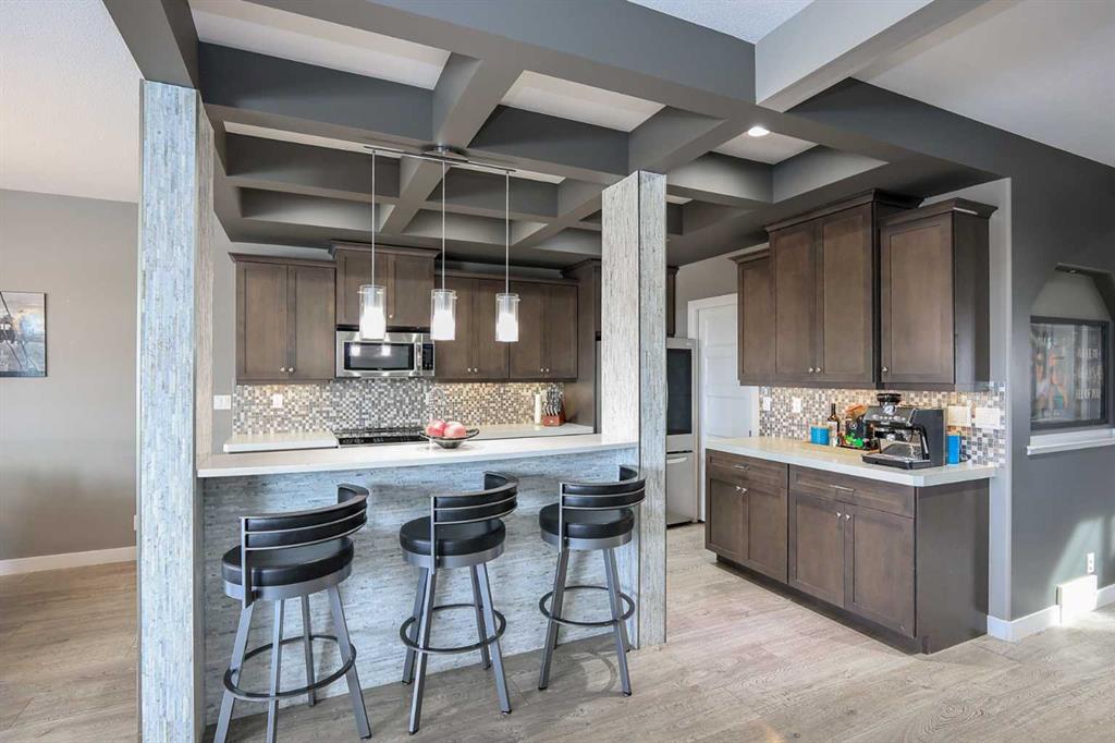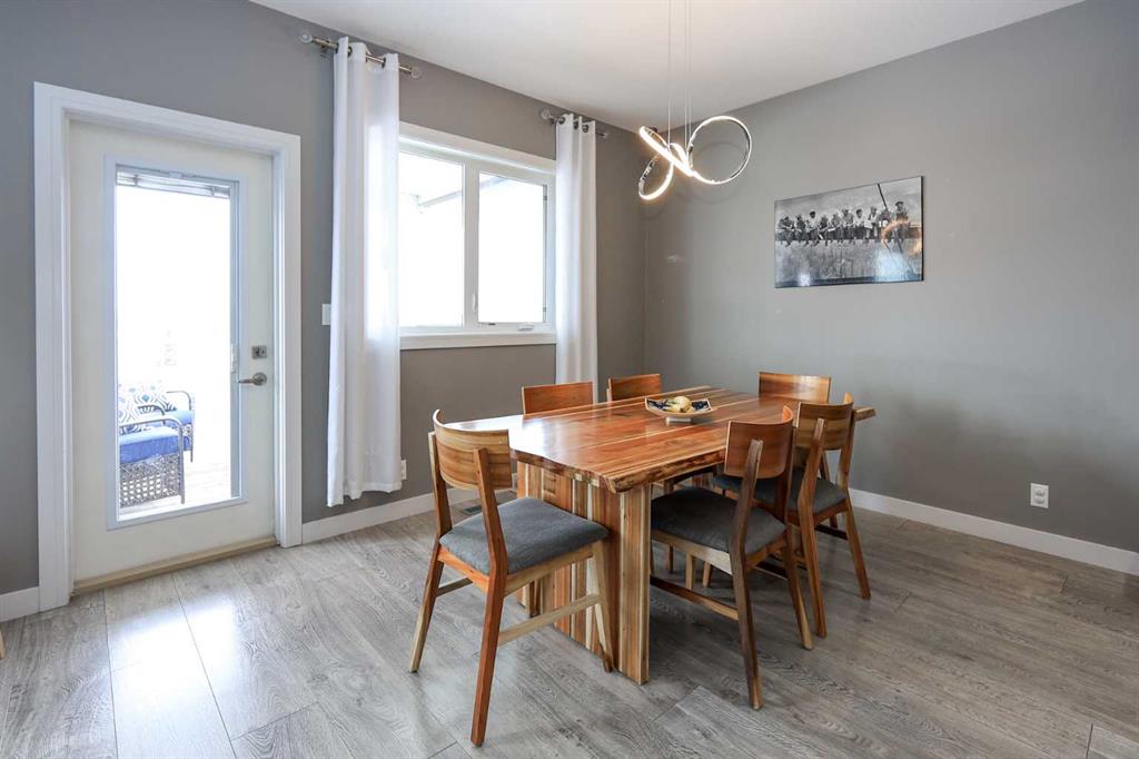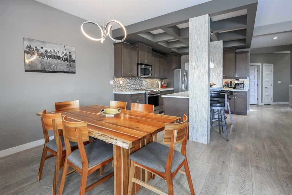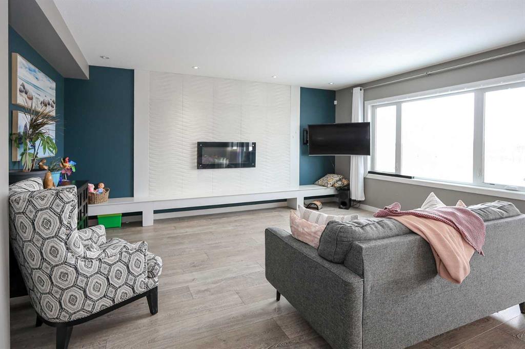FULLY DEVELOPED 4 BEDROOM + OFFICE, 4 BATHROOM 2-STOREY ~ WALKOUT BASEMENT ~ BACKING ONTO A PARK AND GREEN SPACE ~ HEATED GARAGE ~ Great features include; Central air conditioning, operational in-floor heat, built-in’s ~ Covered front entry welcomes you and leads to a 2-storey foyer with tile floors, coffered ceilings, a built in bench and a large walk-in closet ~ Open concept main floor layout complemented by large windows that fill the space with natural light ~ The living room has a built in bench and textured feature wall with a fireplace ~ The custom kitchen offers an abundance of cabinet space, stone countertops including an island with a bar height eating bar, full tile backsplash, under cabinet lighting, upgraded stainless steel appliances and access to the walkthrough pantry that leads to the mudroom ~ Easily host large gatherings in the dining room with garden door access to the covered deck with park views ~ 2 Piece bathroom ~ Conveniently located main floor laundry has built in cabinets and a sink ~ The mudroom has a built in bench/lockers, another large walk-in closet, and easy access to the double attached garage ~ Open staircase leads to the upper level and overlooks the foyer below ~ French doors lead to a large bonus room with a built in book shelf and access to the home office/den ~ 2 generous size bedrooms share a 4 piece bathroom ~ The primary bedroom can easily accommodate a king size bed plus multiple pieces of furniture, has a huge walk in closet and a 3 piece ensuite with a built in makeup vanity ~ The fully finished walkout basement offers a 4th bedroom, 4 piece bathroom, large home gym, wet bar and a family room with walkout access to a covered patio ~ Heated oversized double attached garage is insulated, finished with drywall, has two overhead doors and a convenient man door to the backyard ~ The backyard is landscaped, has a fire pit, shed and no neighbours behind - backing onto a playground and walking trails ~ easy access to schools, shopping and the highway.