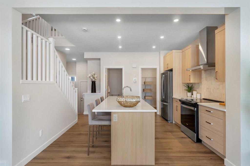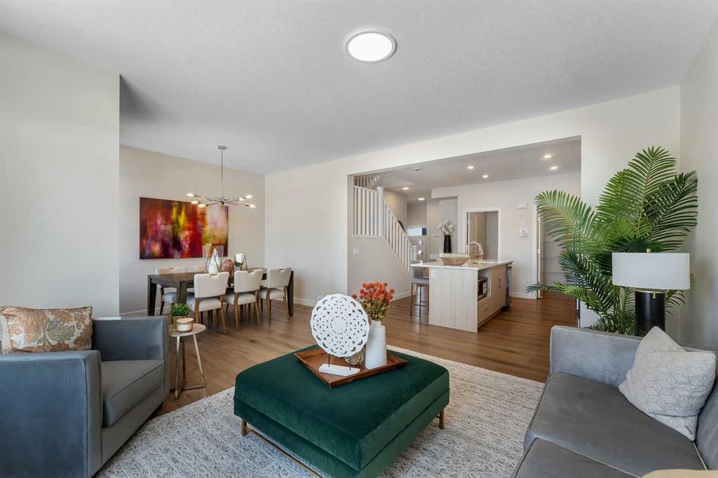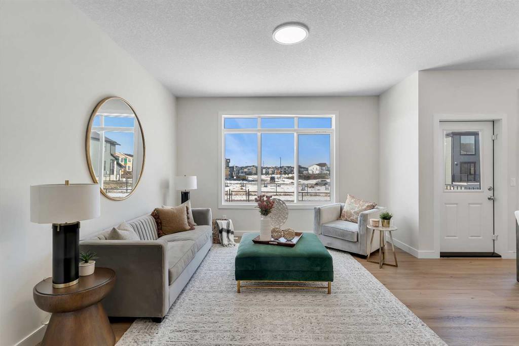Stylish, steps to the lake, and ready for you to call home. Welcome to this beautifully appointed, brand-new, award-winning Alliston at Home front-attached garage duplex, ideally located just steps from Chestermere Lake. Offering a thoughtful and functional floor plan with gorgeous finishes throughout, featuring 3 bedrooms, 2.5 bathrooms, a side entrance to the basement and backing onto a pathway with a lake view, what\'s not to love? Inside, the open concept kitchen, living room and dining area features wide luxury vinyl plank flooring and airy 9\' ceilings, creating a bright and spacious feel. The kitchen will please the chef of the home with quartz countertops, a large island perfect for meal prep and entertaining, classic white 42\" cabinets, sleek stainless steel appliances and a dedicated pantry. Triple-pane windows, which are a standard feature at Alliston Homes, flood the space with natural light. A powder room and a spacious foyer with a large closet off the double-attached garage complete the main level. Step outside to the sunny backyard, complete with a deck equipped with a gas line for BBQs, and enjoy lake views year-round. Whether swimming in the summer or skating in the winter, this location is all about connection to the outdoors. The spacious yard offers ample space for children or pets to play. Upstairs, the primary suite is a comfortable retreat, featuring a large walk-in closet and a spa-inspired ensuite with dual sinks and a spacious walk-in shower. Two additional bedrooms and a convenient laundry room complete the 2nd level. The unfinished basement, with 9-foot ceilings and a side entrance, offers endless potential for future development and equity-building ideas. This property is turnkey, complete with front and back landscaping, and is close to schools, shopping, and the city.