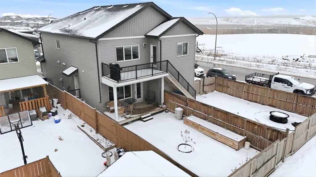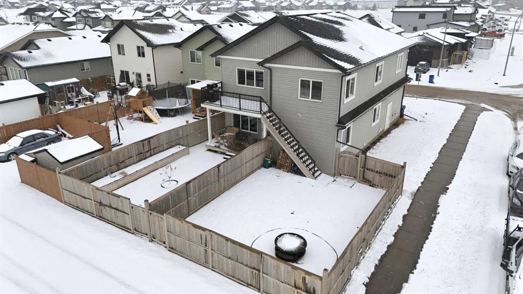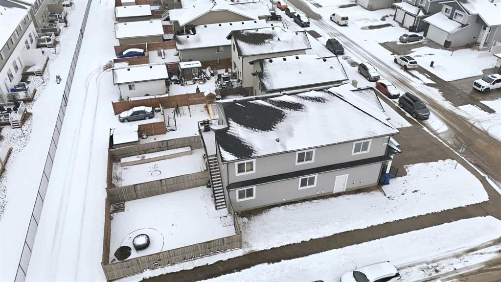 Welcome to this unique UP/DOWN DUPLEX, offering the perfect blend of comfort, privacy, and togetherness—ideal for multi-generational families or savvy investment opportunity. With separate utility services, private fenced backyards, and individual attached garages, this home makes it easy to live together while maintaining day-to-day convenience and privacy. Or are you looking to START YOUR RENTAL PORTFOLIO? You could live in 1 unit and rent the other or rent both. The main floor suite features ACCESSIBILITY, 2 bedrooms, 1 bathroom and the garden door leads to a private COVERED DECK and garden boxes. Upstairs, the suite offers 3 bedrooms, 2 bathrooms and large windows that have an awesome WEST VIEW and bring in plenty of natural light. Step out onto the deck to enjoy your raised deck or head down the stairs to your privately fenced backyard with back alley access and a beautiful fire pit area. Highlights include CONRETE FLOORING BETWEEN the suites providing excellent sound separation, a utility room with a SEPARATE EXTERIOR ENTRANCE and access to a full 4\' CRAWL SPACE with so much storage!! Located in a newer, family-friendly neighborhood in Blackfalds, close to parks, schools, and the popular Abbey Center while having quick access to both Highway 2 & 2A.