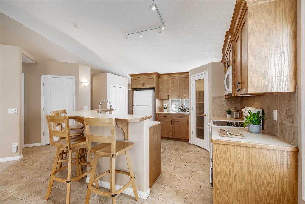 Located in the sought-after community of Rocky Ridge, this bungalow villa offers over 2,700 sq ft of developed living space with the ease of maintenance-free living, including lawn care and snow removal. With three bedrooms, three full bathrooms, and a double attached garage, the layout is well suited for both everyday living and hosting. The main floor opens to a spacious entry, where the dining room is conveniently situated just off the front of the home. French doors lead to the main floor office or flex room, complete with a built-in desk. From here, the layout flows naturally into the kitchen and living areas, where large windows bring in natural light and vaulted ceilings enhance the sense of space. The kitchen is thoughtfully designed with white appliances, a pantry, generous cabinetry, and a large island with seating, flowing comfortably into the living room. A gas fireplace with built-ins anchors the space, and access is provided to a balcony with a privacy wall, offering a comfortable outdoor area to enjoy a morning coffee or sit and relax while taking in the surrounding views. The primary suite is positioned to take advantage of the surrounding greenspace, with a bay window and 10-foot ceilings adding to the sense of space. It includes a well-appointed ensuite with a soaker tub, separate shower, and a walk-in closet. A four-piece bathroom and a practical mudroom with a stacked washer and dryer complete the main level. The fully developed basement expands the living space with a large recreation room featuring a second gas fireplace and a wet bar, making it ideal for entertaining or relaxing. Two additional bedrooms and another four-piece bathroom provide flexibility for guests or family members. A dedicated storage room with shelving and a workstation, along with central vacuum, adds everyday convenience. Pets are permitted with board approval, allowing for up to two. The location offers immediate access to pathways, parks, and playgrounds, along with the amenities of the Rocky Ridge Ranch Homeowner’s Association, including a lake, tennis & pickleball courts, skating rink, and splash park. Nearby shops and amenities include Calgary Co-op and Crowfoot Crossing, schools in Royal Oak, and recreation at the Shane Homes YMCA. Commuting is straightforward with access to major routes and the Tuscany LRT station, connecting to the University of Calgary, SAIT, and downtown. Additional destinations such as Market Mall, Foothills Hospital, Alberta Children’s Hospital, Bowness Park, and Winsport are just a short drive away, with the mountains close at hand. Take advantage of your opportunity to see this incredible property in person, book your showing today! Be sure to check out the floor plans and 3D tour for a closer look before your visit.