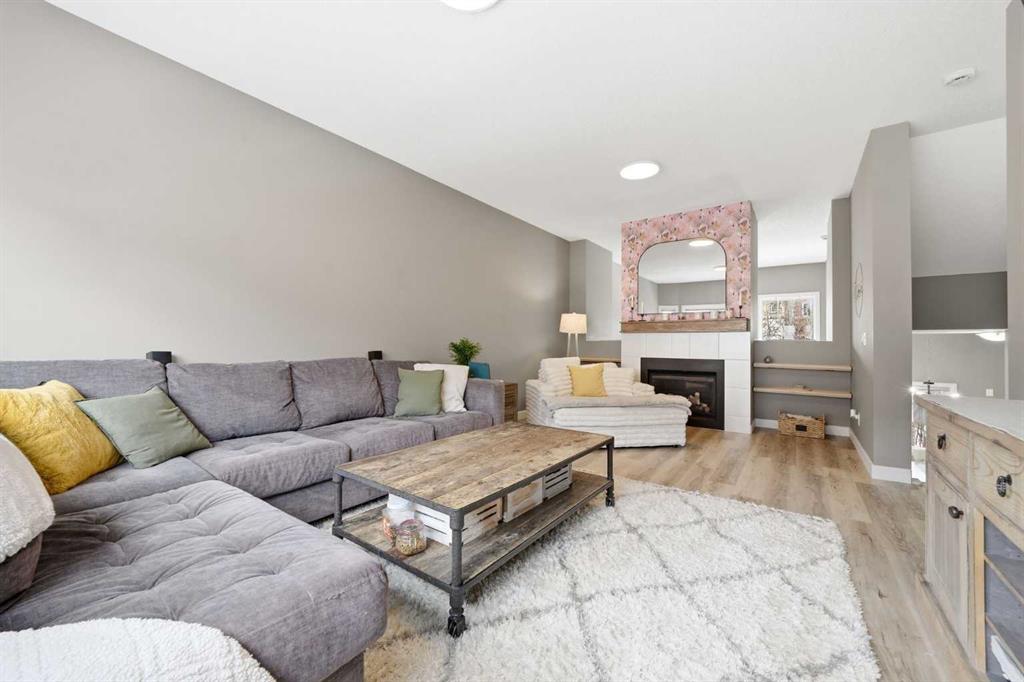 The bright open-concept main floor is ideal for entertaining and daily living, featuring a beautifully enhanced kitchen with a remodelled island, new granite countertops, new oversized sink, new tile backsplash, and added cabinetry for extra storage. Stainless steel appliances, a gas stove, and a large pantry complete this well-designed space. The cozy living room is anchored by a gas fireplace, while the renovated laundry area offers additional built-in storage rarely found in comparable units. A convenient main floor powder room completes the level.