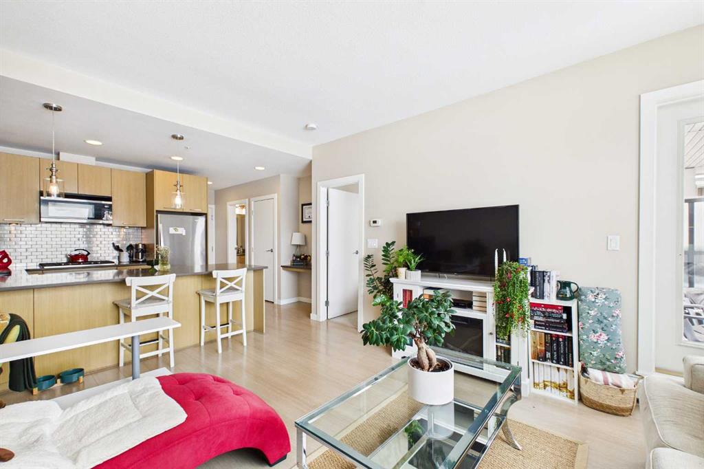 Experience the pinnacle of inner-city living in this stunning one-bedroom, one-bathroom sanctuary located in the prestigious community of Renfrew. Designed for the discerning urbanite, this condo blends contemporary elegance, convenience, sophistication and boasts a perfect view of Calgary’s downtown skyline. Modern Design & Finish with a minimalist vibe. Step into an open-concept layout defined by sleek, contemporary finishes and a sophisticated palette. The chef-inspired kitchen features flat-panel cabinetry with soft close precision, gas cooktop, premium stainless steel appliances, chunky shelves and sprawling polished quartz countertops that serve as both a culinary workshop and social centrepiece seamlessly flowing into a bright and airy living space. High ceilings and wide-plank flooring enhance the modern aesthetic, creating a home that is as functional as it is beautiful. The hidden gem of this residence is the unobstructed, panoramic view of the downtown skyline from either your bedroom or your main living space, its spectacular! Oversized windows flood the interior with natural light from the Southwest-facing balcony. Whether you’re sipping your morning coffee or hosting evening cocktails, you’ll have a front-row seat to Calgary’s most spectacular sunsets and the glittering lights of the city core. Minutes from the downtown core your commute will be short and your walks will be long as you stroll along our mighty Bow River and pathways system. Living in this building means enjoying a suite of premium amenities designed for a high-performance lifestyle. Skip the gym membership and stay active in the well-equipped, on-site gym. Convenient in-suite laundry and storage. Keep your vehicle secure and warm year-round in the heated parkade that includes a dedicated locker for your seasonal gear and outdoor equipment as well. Bike storage, visitor parking and we cant forget our furry friends a DOG and or CAR WASH. Renowned for its \"small-town\" feel with big-city proximity, Renfrew offers an unparalleled lifestyle. You are steps away from the trendy bistros of Edmonton Trail and 1st ave amenities, the lush pathways of Tom Campbell’s Hill, and a quick commute to the downtown core via bike, transit, car or a stroll. This is more than just a condo; it’s your private retreat above the city. Schedule your private showing today and see why Renfrew is the place to be in 2026.