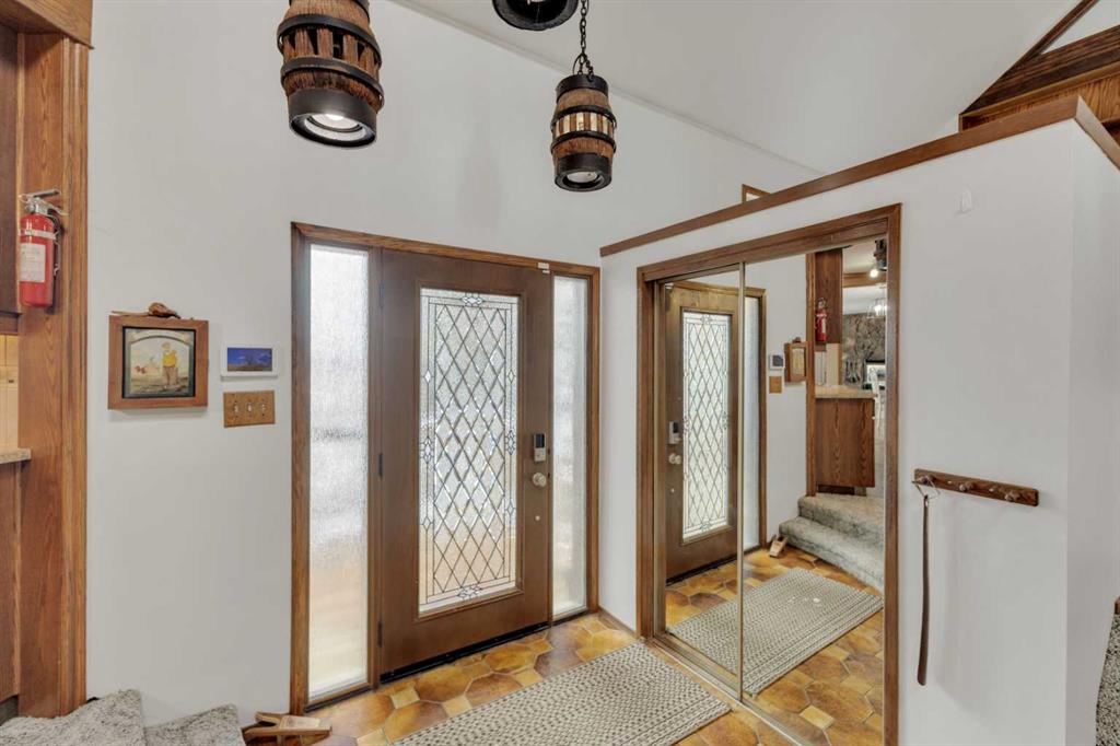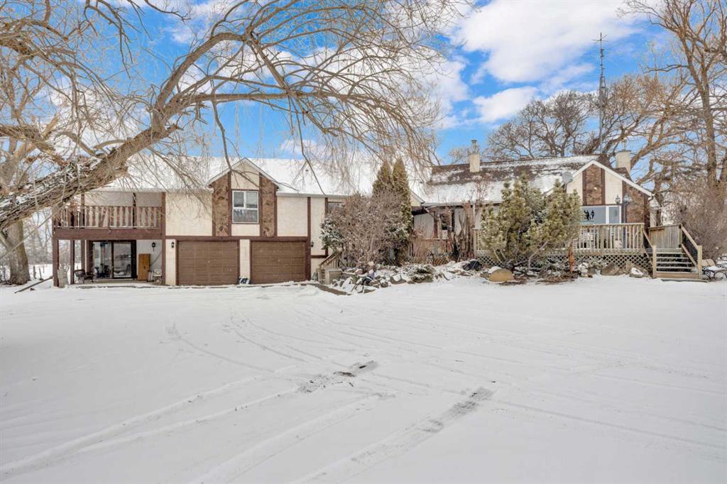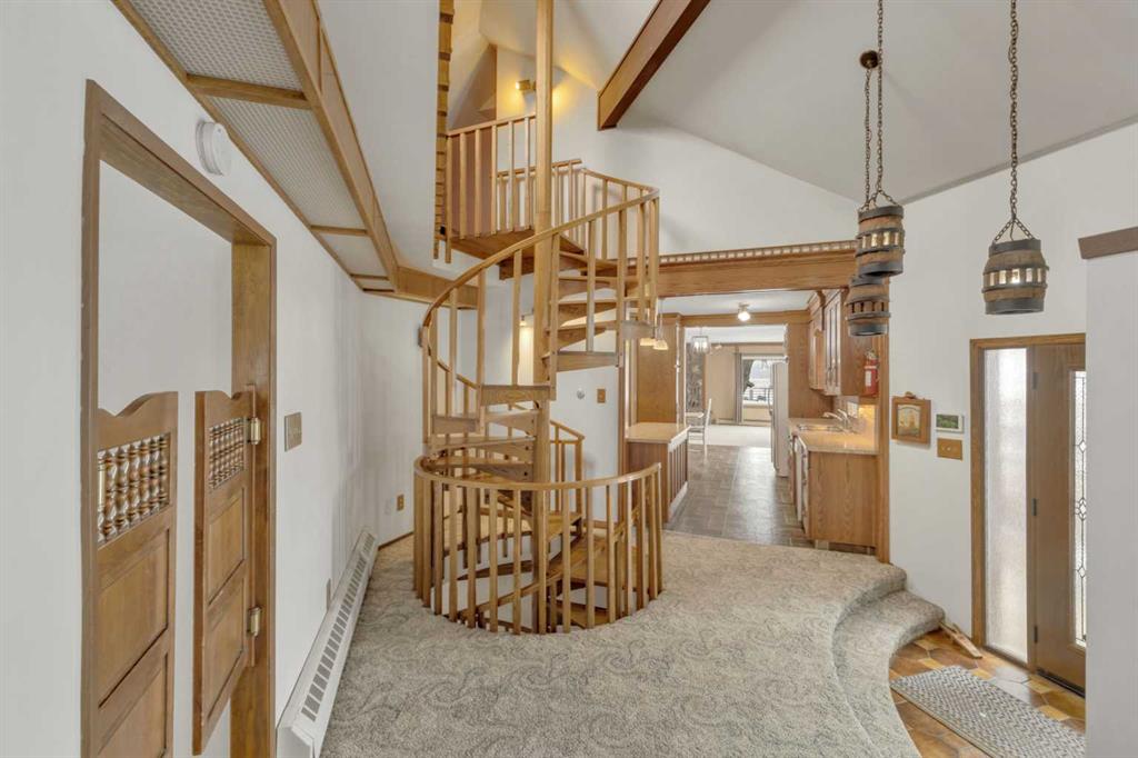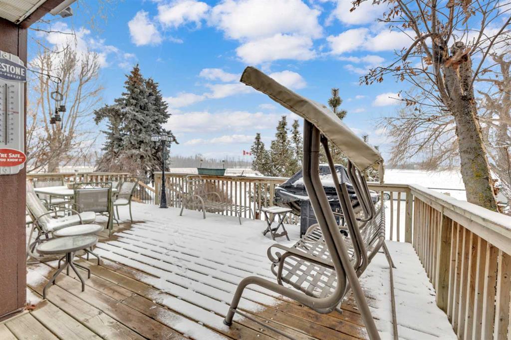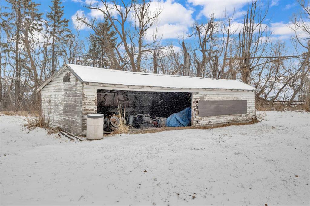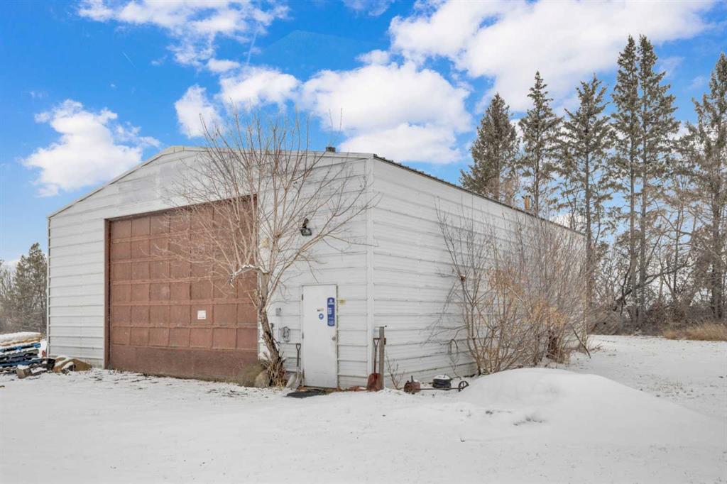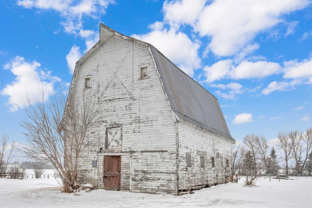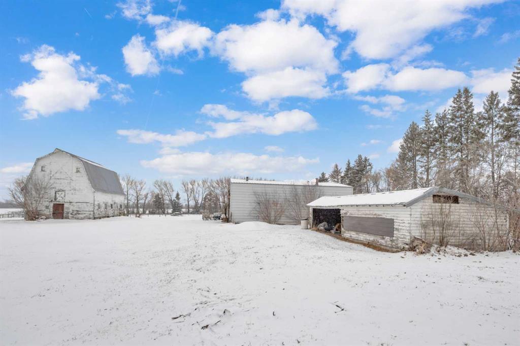 NOT IN a subdivision and NO IMMEDIATE neighbors. An incredible opportunity 30 YEARS in the making!! Just under 7 Acres of flat, usable land with an incredible shelterbelt. This updated character home blends charm and function, featuring stunning oak spiral staircase, Colorado stone fireplace and major upgrades throughout (kitchen-2015, windows & roof-2021, paint, flooring-2024 and more!). Newer front and rear decks on steel screw pile anchors, and everything outside you need for livestock, horses and the mechanic in your life. A hip roof barn that is 30ft W x 44ft L with 5 box stalls and large pens ready for critters. The XL heated farm shop is 43ft W x 50ft L with a 20x14ft high door – so much space for working, welding, mechanic and storage! Peaceful, private and just minutes to Ponoka – this is acreage living at its best!