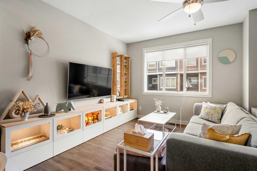 Welcome to this beautifully maintained and thoughtfully upgraded townhouse in the highly sought-after community of Nolan Hill, offering a perfect blend of style, comfort, and functionality. Step inside to discover a bright and inviting open-concept main floor with high ceilings and an open floorplan, where large windows flood the space with natural light and create an airy, welcoming atmosphere. The modern kitchen is both stylish and practical, featuring quartz counters, sleek cabinetry, stainless steel appliances, and a spacious breakfast bar that seamlessly connects to the dining and living areas—perfect for entertaining or everyday living. Just off the kitchen, enjoy a private balcony ideal for morning coffee or evening relaxation, fitted with a gas line for your BBQ! Upstairs, this well-designed layout offers two spacious primary-style bedrooms, each complete with walk-in closets and their own 4-piece ensuites, providing ultimate comfort and privacy; both ensuites have been enhanced with upgraded pot lights above the showers, a thoughtful upgrade completed after possession and not standard in similar floorplans. Additional highlights include air conditioning for year-round comfort, upper-level laundry, and a welcoming lower level with access to the attached tandem garage, offering ample parking and storage. Located close to parks, pathways, shopping, and major routes, this home presents an exceptional opportunity to own in one of NW Calgary’s most desirable communities!