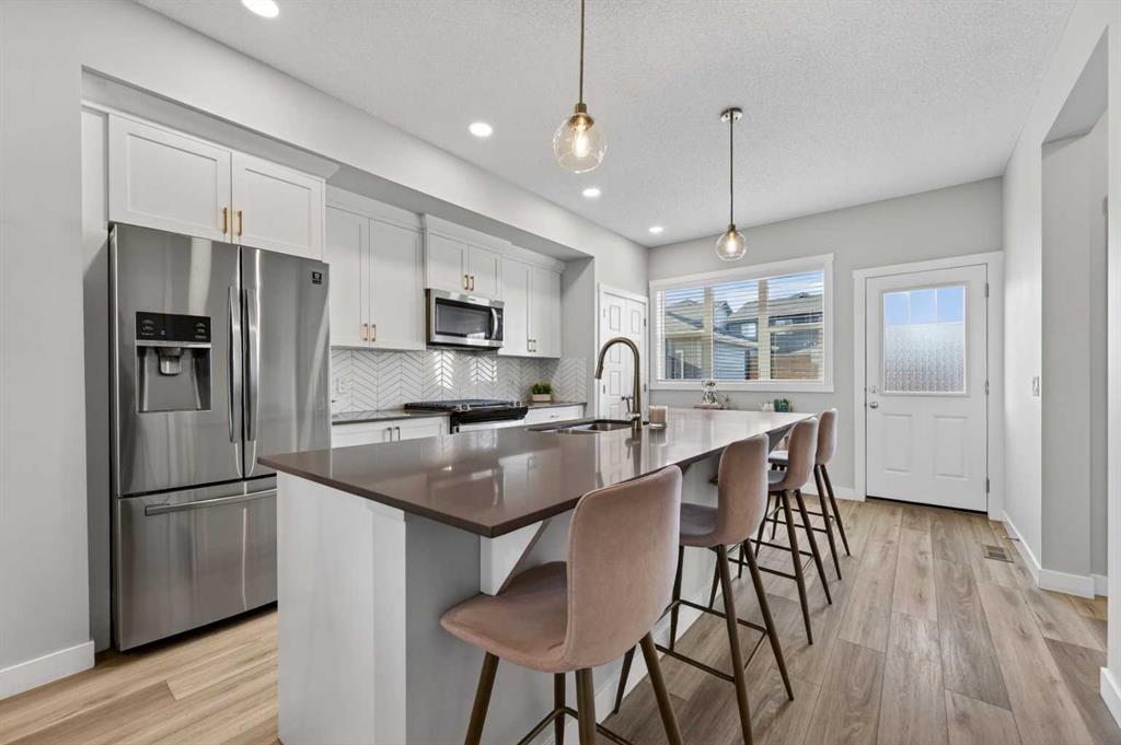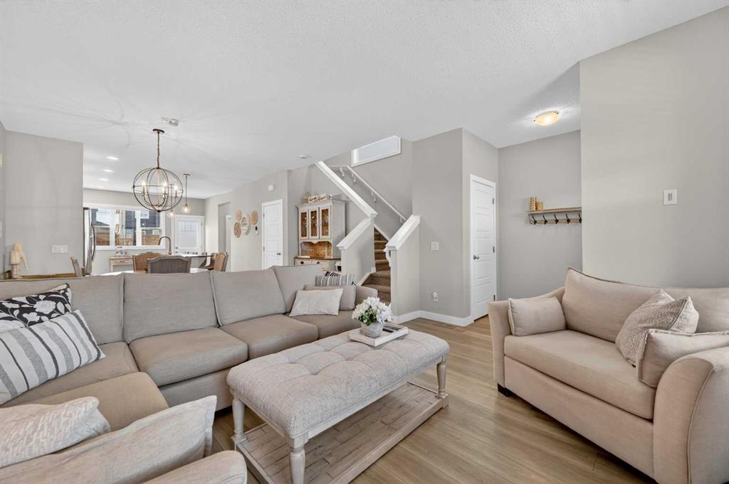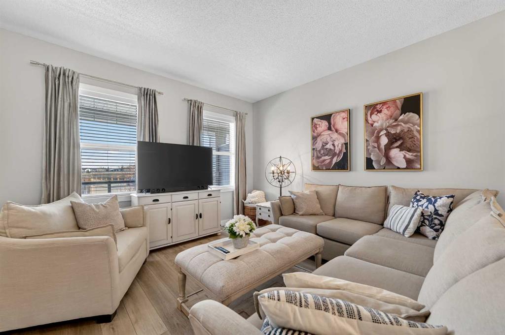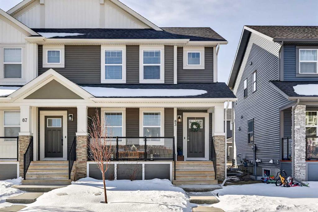 WELCOME HOME! This beautifully maintained 2021 Shane Homes duplex with more than 2,200 sq ft developed is FULLY FINISHED, affordable, and truly move-in ready! From the moment you step inside, you’ll notice the PRIDE OF OWNERSHIP with fresh paint, sparkling clean condition, and an inviting open-concept layout filled with natural light. The covered front porch is the perfect spot to relax and enjoy a shady summer afternoon. The main floor offers 9\' ceilings, a spacious living and dining area, anchored by a stunning kitchen featuring a MASSIVE ISLAND, gas range, and plenty of room for entertaining or everyday family life. Enjoy modern convenience with ceiling-mounted Google Mini speakers on the main floor and in the bedrooms—easily control music, lighting, and more with just your voice. Upstairs, you’ll find a generous primary retreat complete with a walk-in closet and private ensuite, along with two additional well-sized bedrooms, a full 4-piece bathroom, and the convenience of upper-level laundry. The professionally developed basement adds even more living space with a large rec room, 4-piece bathroom, versatile flex area, and ample storage. This could be a perfect set up for a teenager, or even extended family. Step outside to your backyard deck with privacy screens—perfect for relaxing or hosting—and a rear parking pad ready for your future dream garage. Located in the sought-after community of Midtown in Airdrie, you’ll love the proximity to scenic ponds, walking paths, canals, and nearby shopping, restaurants, and amenities. A fantastic opportunity to own a turn-key home in a vibrant, family-friendly neighbourhood!