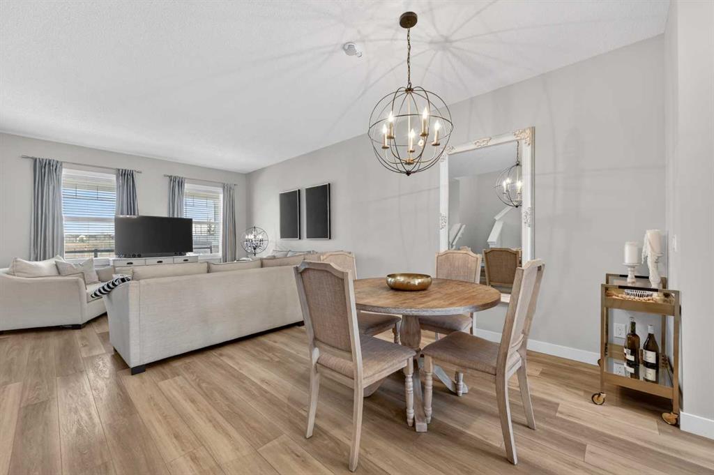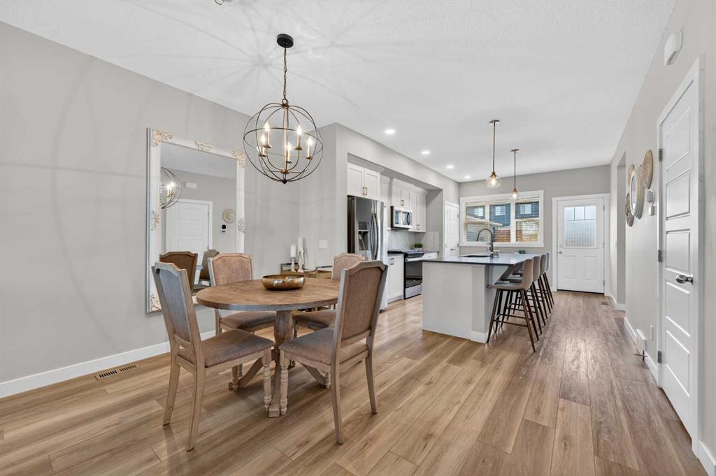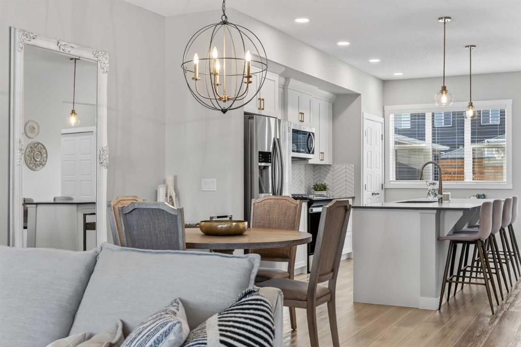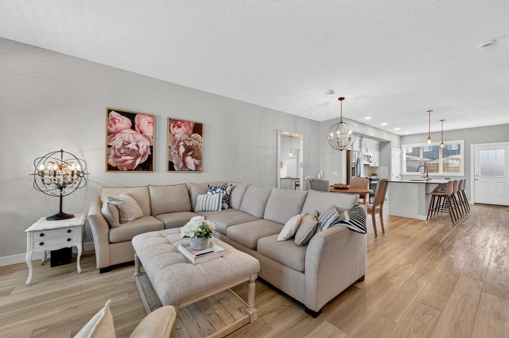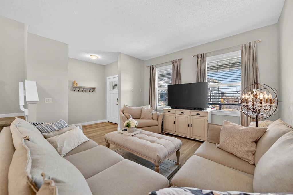 WELCOME HOME! This beautifully maintained 2021 Shane Homes duplex with more than 2,200 sq ft developed is FULLY FINISHED, affordable, and truly move-in ready! From the moment you step inside, you’ll notice the PRIDE OF OWNERSHIP with fresh paint, sparkling clean condition, and an inviting open-concept layout filled with natural light. The covered front porch is the perfect spot to relax and enjoy a shady summer afternoon. The main floor offers 9\' ceilings, a spacious living and dining area, anchored by a stunning kitchen featuring a MASSIVE ISLAND, gas range, and plenty of room for entertaining or everyday family life. Enjoy modern convenience with ceiling-mounted Google Mini speakers on the main floor and in the bedrooms—easily control music, lighting, and more with just your voice. Upstairs, you’ll find a generous primary retreat complete with a walk-in closet and private ensuite, along with two additional well-sized bedrooms, a full 4-piece bathroom, and the convenience of upper-level laundry. The professionally developed basement adds even more living space with a large rec room, 4-piece bathroom, versatile flex area, and ample storage. This could be a perfect set up for a teenager, or even extended family. Step outside to your backyard deck with privacy screens—perfect for relaxing or hosting—and a rear parking pad ready for your future dream garage. Located in the sought-after community of Midtown in Airdrie, you’ll love the proximity to scenic ponds, walking paths, canals, and nearby shopping, restaurants, and amenities. A fantastic opportunity to own a turn-key home in a vibrant, family-friendly neighbourhood!