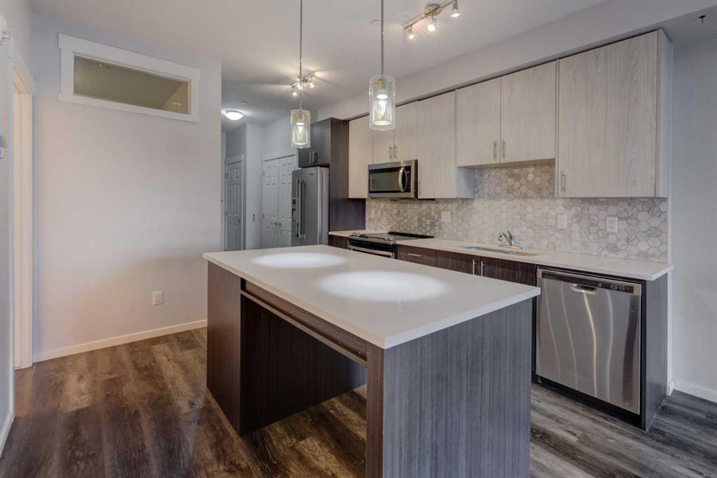 Welcome to modern & convenient living in the heart of Sage Hill – a desirable, family oriented community with every amenity you could want. This very affordable home is ideal for first-time buyers, downsizers or investors. The 2 bedroom/2 bathroom unit offers a very functional open concept layout with 9 foot ceilings throughout. The contemporary style kitchen comes with a generously sized center island, solid quartz countertops, lots of soft close cabinetry & drawers throughout. The spacious, well laid out kitchen also comes with stainless steel appliances including: over-range microwave, stove, fridge and built in dishwasher. If you enjoy cooking, this is an awesome kitchen.