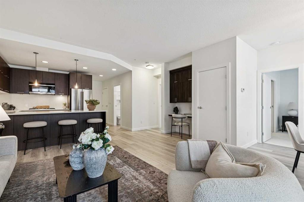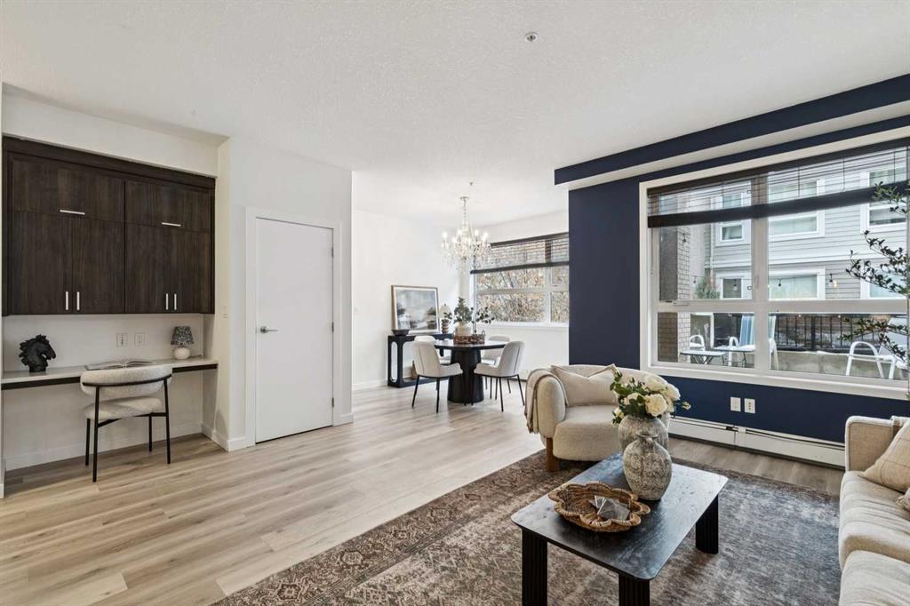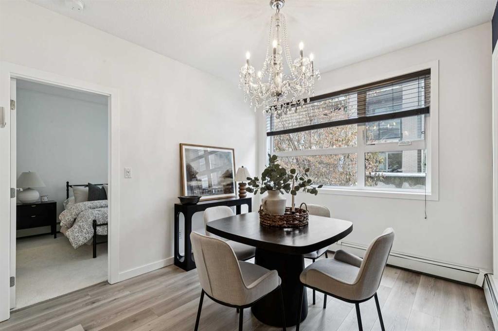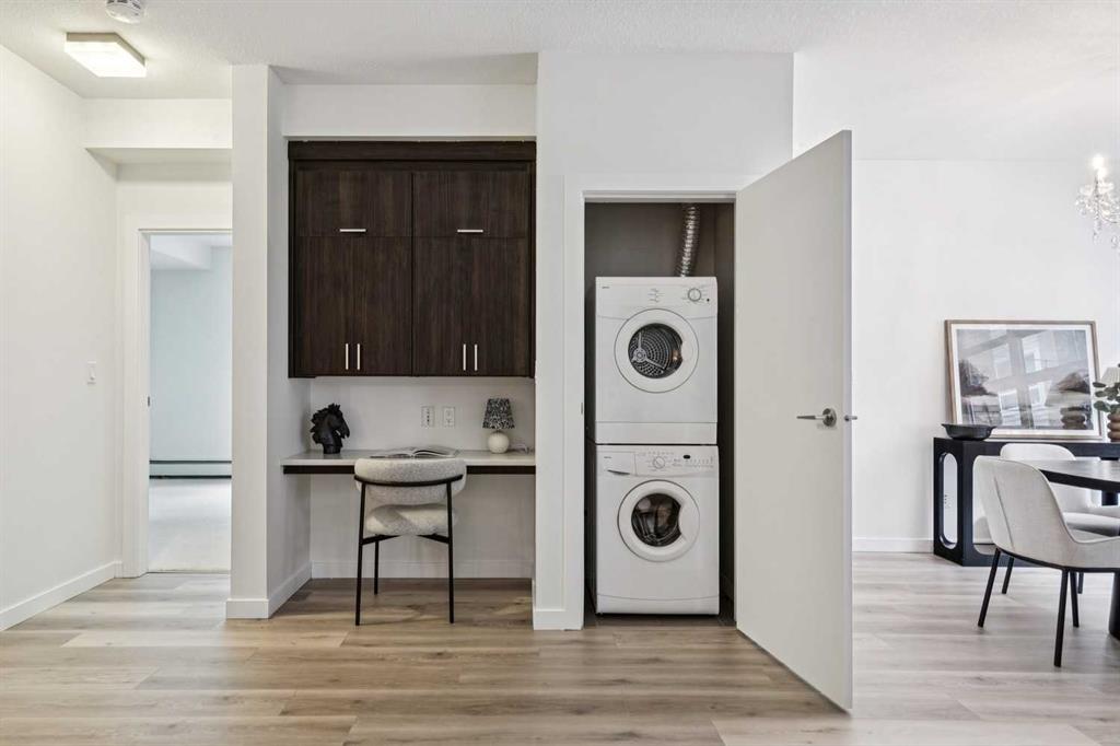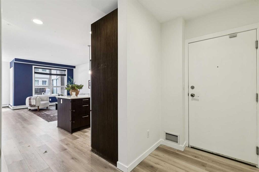 Welcome to this spacious ground-floor condominium in the established community of Renfrew, offering over 900 square feet of well-planned living space. The unit has been refreshed with new paint and brand new flooring throughout, including luxury vinyl plank in the main living areas and plush carpet in both bedrooms. The kitchen features quartz countertops and a high-end appliance package, including an updated refrigerator and dishwasher. The in-suite laundry features a brand new washer and dryer. A custom built-in desk with upper cabinets creates a practical workspace while adding additional storage. The layout also includes a large in-unit storage room, ideal for keeping seasonal items and everyday essentials organized. As a ground-floor unit, the patio is generously sized and opens directly onto the building’s courtyard, offering easy outdoor access and a great option for pet owners. Two titled parking stalls are positioned side by side, adding everyday convenience. Residents have access to a fitness room along with underground visitor parking. Renfrew is known for its elevated setting and quick access to the downtown core. From here, you are close to the restaurants and amenities along Edmonton Trail and within walking distance to Bridgeland, offering a wide variety of local shops, cafes, and dining options. This well-maintained unit in a convenient inner-city location is ready for its next owner to move in and enjoy.
