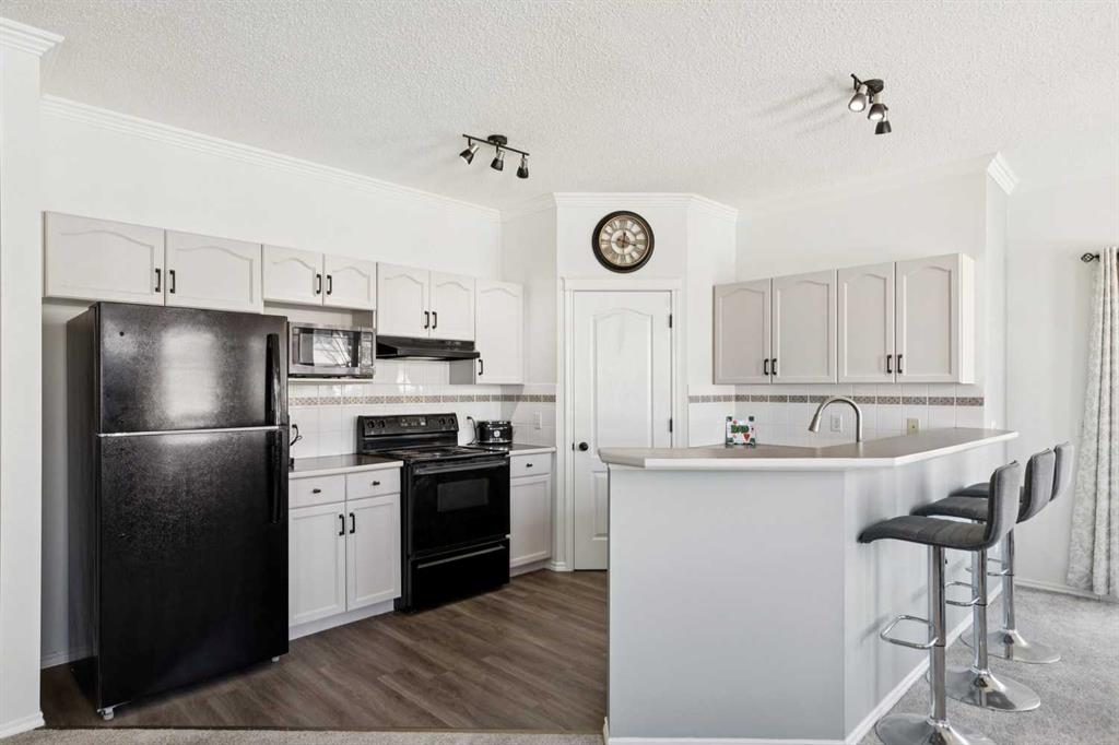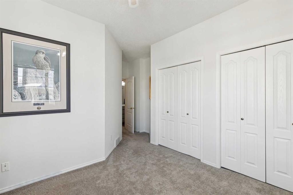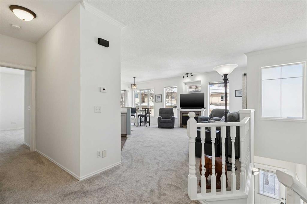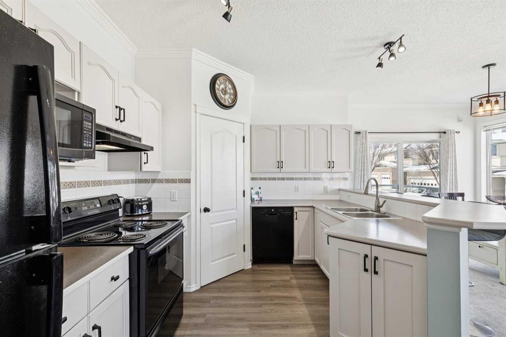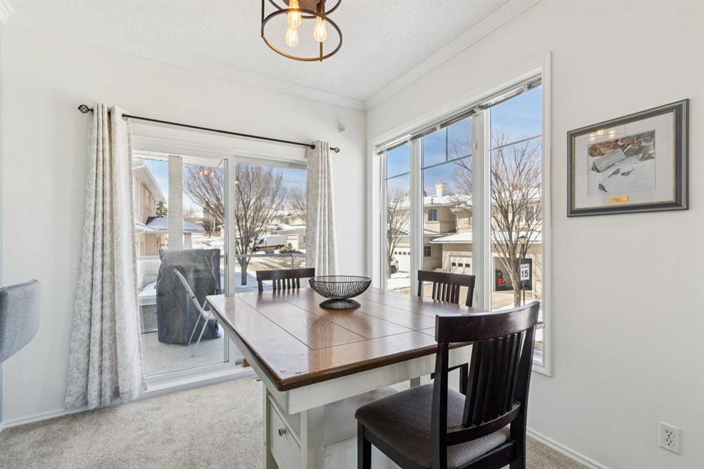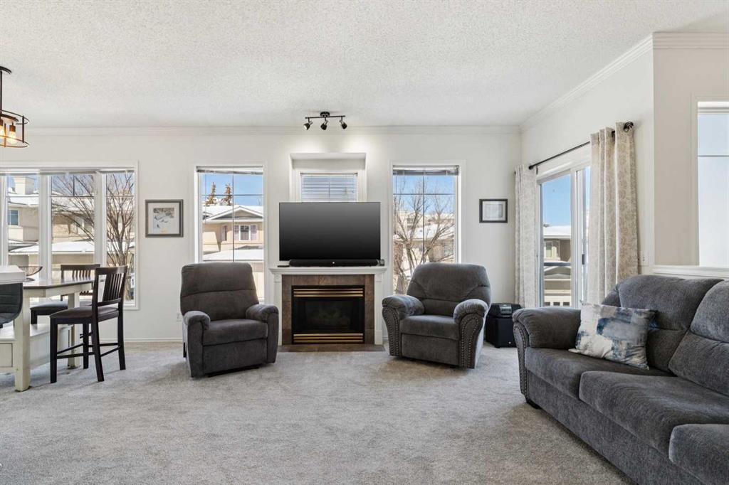 Welcome to 40 Edgeridge Terrace, ideally located in the sought-after Hillsboro complex in Edgemont. This beautifully maintained upper-level bungalow-style townhome offers the perfect balance of natural serenity and urban convenience. Featuring two bedrooms, two bathrooms, and parking for two vehicles - including an oversized single garage and driveway - this home presents an exceptional opportunity to live in a quiet and well-established community. Step inside to discover 9-foot ceilings and a bright open-concept layout that seamlessly connects the kitchen, dining, and living areas. The spacious kitchen offers ample cabinetry, generous preparation space, and a convenient pantry, flowing effortlessly into the large dining area—perfect for hosting family and friends. From here, enjoy direct access to the first of two private balconies, ideal for summer barbecues and outdoor dining. The inviting living room is anchored by a cozy fireplace and highlighted by large windows that flood the space with natural light. A second balcony extends the living space outdoors, offering a peaceful retreat to relax and unwind. Designed with privacy in mind, the bedrooms are thoughtfully positioned on opposite sides of the home. The primary suite features a generous walk-in closet and a private ensuite, creating a comfortable and serene retreat. The second bedroom provides excellent flexibility for guests, a home office, or additional living space. A full four-piece bathroom and a convenient main-level laundry add to the home’s functionality and ease of living. Recent updates enhance both style and peace of mind, including a new hot water tank (2025), carpet and vinyl plank flooring, modern lighting, paint, new toilets, an updated main bathroom vanity and faucets, an updated ensuite counter, and refreshed kitchen hardware. Just steps from your door, enjoy beautifully landscaped grounds, a charming courtyard, and immediate access to the ravine pathway system. With Nose Hill Park, The Hamptons Golf Club, shopping, public transit, and major roadways nearby, this exceptional home offers both tranquility and convenience in one of Calgary’s most desirable northwest communities.