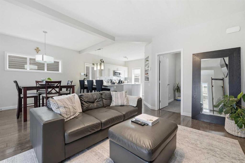 Experience the perfect blend of style and practicality in this ~1,809 sq. ft. home, masterfully crafted by McKee Homes. Situated in the heart of Ravenswood, Airdrie’s premier southeast community, this residence is designed for families who value quality construction and a connected lifestyle. The moment you step onto the spacious front veranda, you’ll feel the \"home\" vibe. Inside, a grand entrance leads to a bright, open-concept living area where large windows flood the space with natural light. The living room serves as a true centerpiece, featuring a cozy fireplace set against a stunning accent wall. For the modern professional, a dedicated main-floor office/den provides a quiet workspace away from the main hustle. Tucked away for privacy is a stylish half-bathroom, leading toward the home\'s operational hub: a huge mudroom that keeps the family organized and the clutter out of sight. Retreat upstairs to find a layout that prioritizes both relaxation and togetherness. The second-floor family room is a versatile escape for movie nights or kid-friendly play space. The sleeping quarters include three generous bedrooms, highlighted by a primary suite complete with a private en-suite. Step out from the dining area onto a good-sized rear deck, perfect for summer BBQs while overlooking the yard and the convenient parking pad. Living in Ravenswood means you are steps away from: Education: Walking distance to École Francophone d\'Airdrie and Heloise Lorimer School. Amenities: Minutes from Kingsview Market for all your shopping and dining needs. Active Lifestyle: Explore the neighborhood’s famous manicured green corridors, playgrounds, and kilometers of winding walking paths. This McKee-built beauty combines high-end design with the everyday utility a growing family needs. Don’t miss your chance to join one of Airdrie’s most vibrant communities!