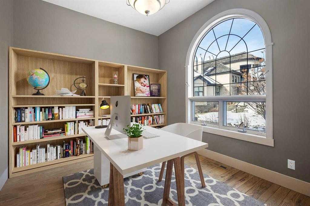 The Slopes community is known for its quiet, picturesque environment, and this home fully embraces its surroundings. Thoughtfully designed to capture unobstructed mountain views from every level, the southwest-facing orientation allows for an abundance of natural light and stunning sunsets.Surrounded by natural beauty and positioned near Griffith Woods Park, as well as top-tier schools and West Hills Shopping Centre. Homes in this exclusive community are rarely offered for sale. Parcels of this size and setting are no longer being created, further enhancing the property’s long-term appeal and uniqueness. Offering nearly 4,500 square feet of well-appointed living space, including 3,160 square feet above grade and a fully developed walkout basement, the home combines scale with functionality. The primary suite serves as a private retreat, complete with a spacious walk-in closet and a spa-inspired ensuite. Additional features include a dedicated home office, a large bonus room, expansive principal living areas, and multiple ensuite bedrooms with walk-in closets, providing both comfort and privacy for family and guests. The lower level features a bedroom, a full bathroom with a steam shower and offers excellent flexibility for fitness, recreation, and entertaining. Outdoor living is equally impressive, highlighted by a wraparound deck with panoramic mountain views and an extensively landscaped yard featuring a tranquil water feature. A paving stone patio with firepit and a separate flagstone seating area with a hot tub creates inviting spaces for relaxation and entertaining. An oversized triple-car garage completes this exceptional property. This is a truly special offering, an ideal home for end users and buyers seeking a rare property with limitless opportunities in one of Calgary’s most desirable communities.