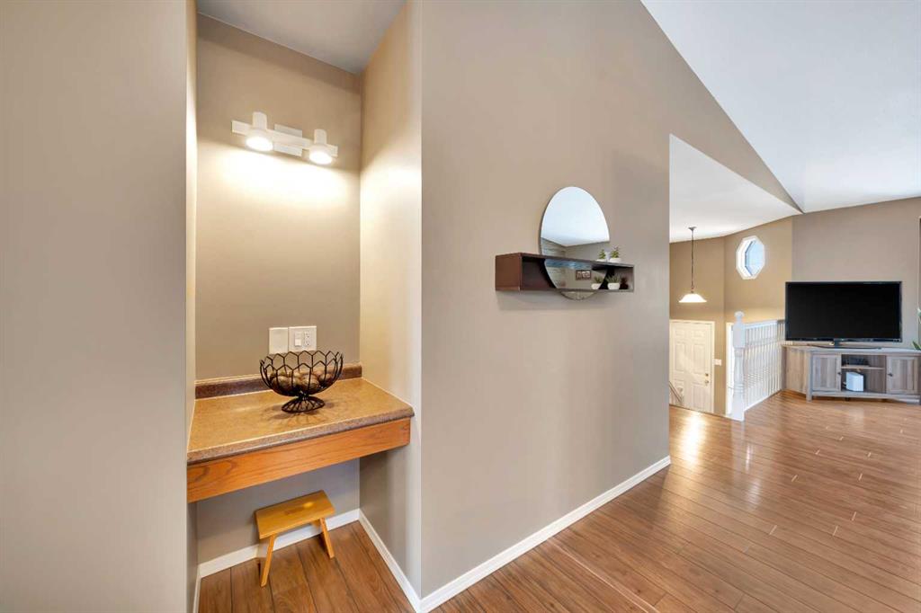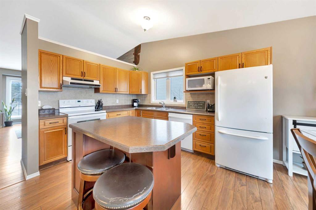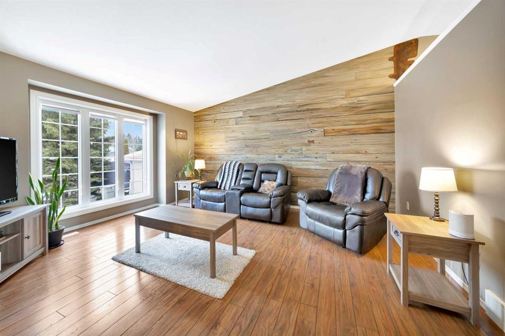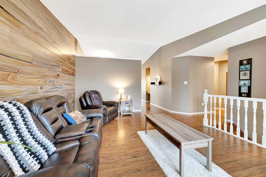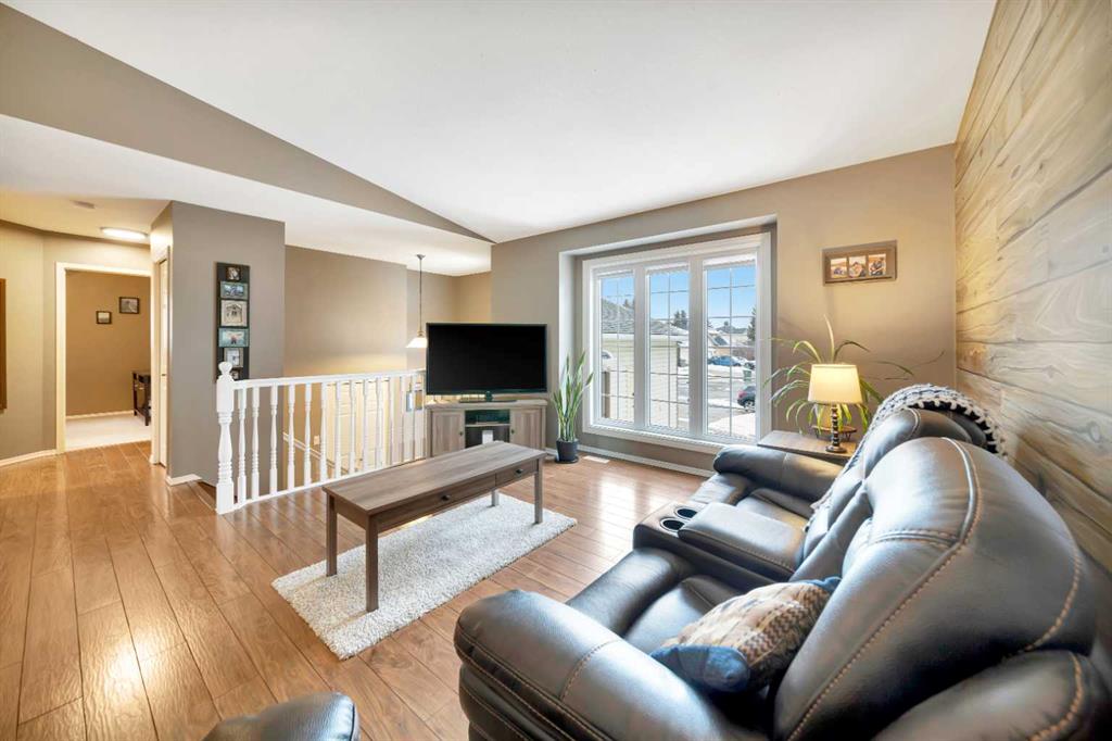 The home offers a functional, spacious layout with 3 bedrooms on the main floor and an additional bedroom downstairs, along with 3 bathrooms, comfortably accommodating family living. The bright main floor features vaulted ceilings, a welcoming living room area, with an artist\'s touch feature wall and a practical kitchen and dining space designed for everyday use.