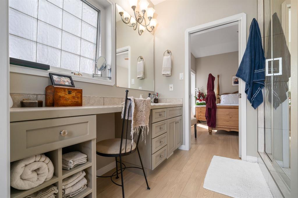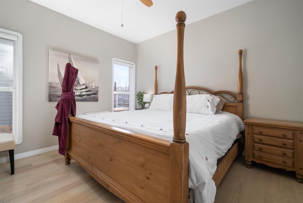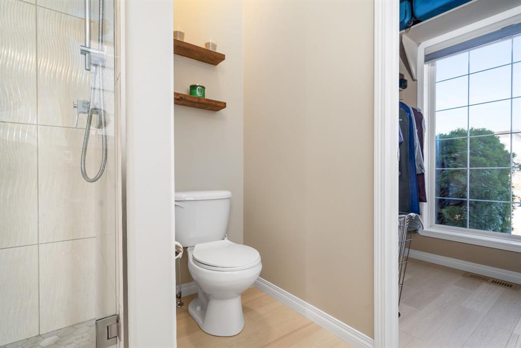 The layout is incredibly functional, featuring a primary bedroom on the main floor, three bedrooms upstairs, and two additional bedrooms and a bathroom with in floor heat in the fully developed basement. Large basement windows bring in plenty of natural light, making the lower level feel anything but “basement.”