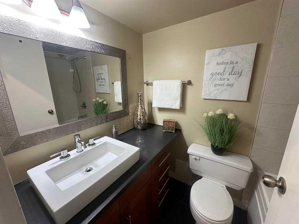 Wow, what an absolutely gorgeous condo!!! This spectacular unit is totally updated & modern, with thousands of dollars in renovations recently spent to create one of the most hip & stylish homes around! SHOW SUITE CONDITION. This wonderful condo features deluxe laminate hardwood floors, a very bright & open kitchen with raised eating bar, new cabinets & counter tops, a mosaic tile backsplash, stainless steel appliances, and a spacious living room with a sunny south facing balcony. Located in the very popular concrete building THE PALISADES. The complex is extremely well maintained and boosts a very healthy 2.5 million dollar reserve fund. The building features a beautiful indoor salt water pool, sauna, and a large exercise facility. Condo fees include all the basics including electricity. Only steps to the trendy shops & restaurants of 17th Avenue or a 5 min walk to downtown Calgary. THIS IS THE HOME YOU\'VE BEEN DREAMING OF...