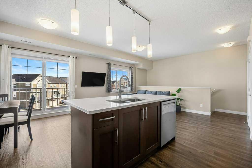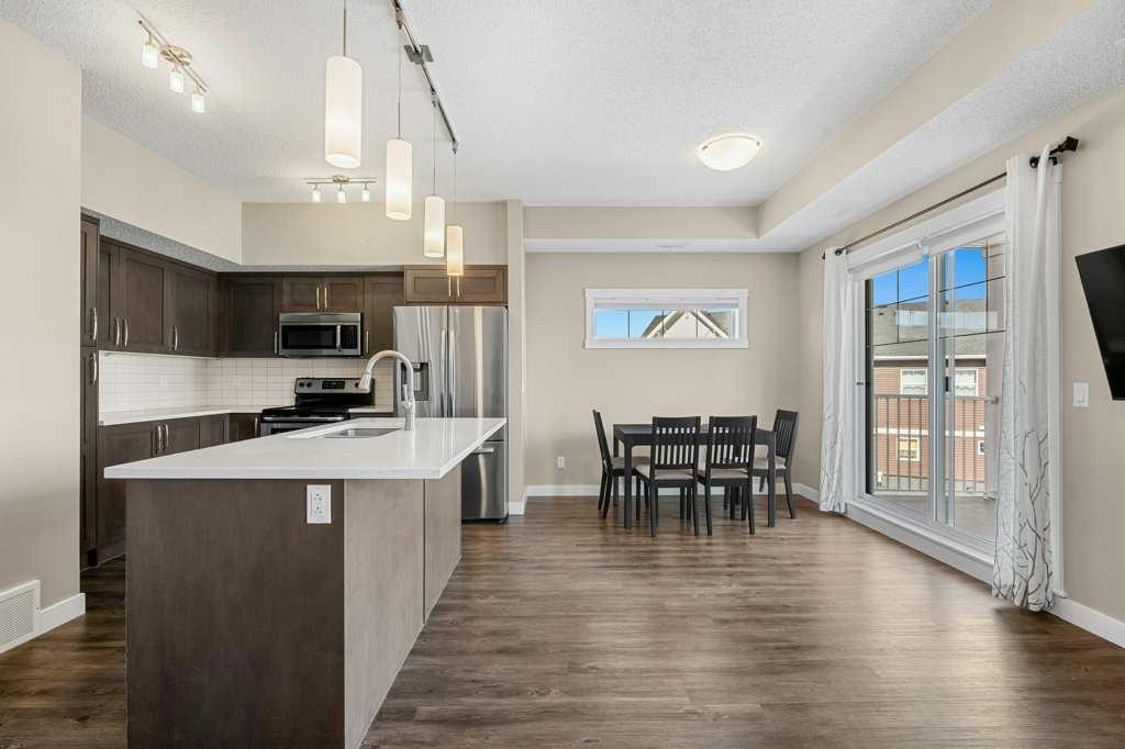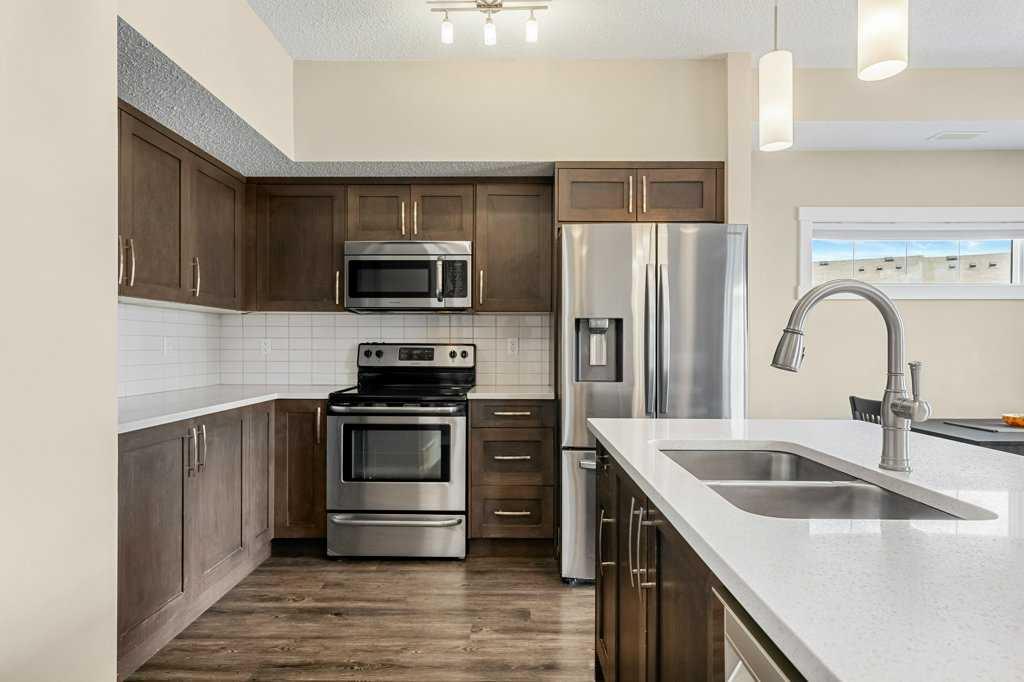 Welcome to this charming home in Kings Heights! Why buy an apartment when you can own your own townhome WITH GARAGE? This lovely corner unit offers the perfect blend of comfort and convenience. Step inside and discover a well-appointed kitchen boasting quartz countertops, gleaming stainless steel appliances, a generously sized island, and an abundance of cabinet and counter space. Adjacent to the kitchen is the spacious & inviting dining room area-great for those family dinners! The living room is also a good size and a great spot to kick back and relax after a long day of work. It gives access to a lovely OVERSIZED balcony, where you can soak up the sunshine. This open concept floorplan is sure to please the most discerning buyer and is great for entertaining family and friends. Retreat to the tranquility of two spacious bedrooms, each offering ample space. This floor also has a full bathroom plus laundry. Convenience is key with an attached single-car garage. It also has a great STORAGE room underneath the stairs and another one that can be accessed from the garage. And Stonekeep has visitor parking! This property has easy access to major roads such as Highway 2, shopping, schools and golf. This is a great investment, or an ideal place to call home. Come check this one out before it is gone!