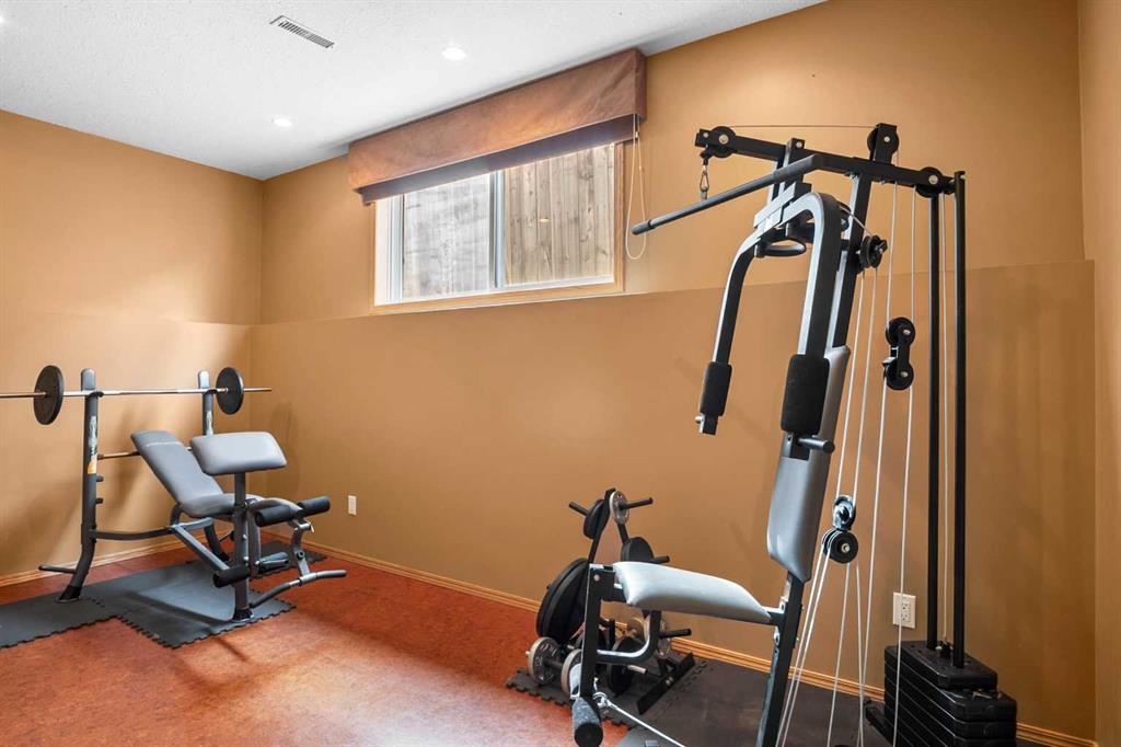 Welcome to the charming community of Carriage Lane in Carstairs. This fully finished bungalow features over 2,500 sq ft of developed living space with 5 bedrooms and 3 full bathrooms, making it ideal for families of all sizes. The main level offers a bright and functional layout, while the fully finished basement expands your living options with in-floor heating, a large family room with wet bar, and a versatile flex space, perfect for a home gym, office, or play room.