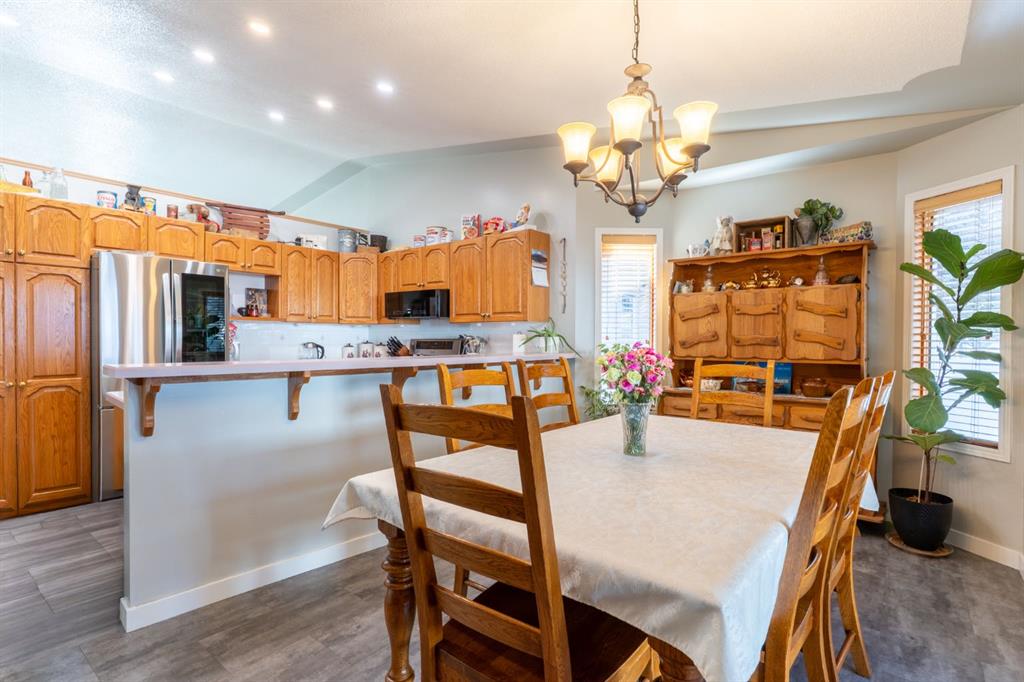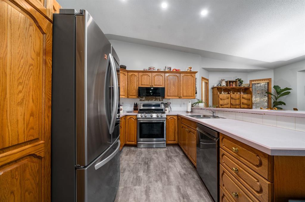 Welcome to this spacious 5 bedroom, 1,572 sqft bi-level in the highly sought-after Parkview neighbourhood — one of Medicine Hat’s most loved locations for good reason. Tucked into a quiet, established area surrounded by nature, you’re just minutes from the Medicine Hat Golf & Country Club, steps from a park and playground, and close to the scenic trails of the peaceful Police Point Park. If lifestyle and location matter, this one delivers. From the moment you step inside, the generous entryway and sunken front living room with vaulted ceilings create an inviting sense of space and light. The open dining and kitchen area offers ample cabinetry, plenty of counter space, and newer appliances — making it perfect for both everyday living and entertaining. The main floor features a spacious primary bedroom complete with ensuite, plus two additional bedrooms and a full 4 pc bath. Downstairs, you’ll find brand new carpet throughout, two large bedrooms, a roomy rec room with new cabinetry, an oversized laundry space, and an extra large storage room currently set up as a fantastic craft space. Outside, enjoy a beautifully tiered and fully landscaped backyard designed for both relaxation and play. Underground sprinklers keep things simple, while the partially covered deck just off the kitchen offers shade on hot summer days and protection when the weather turns. The double attached garage adds everyday convenience and is heated with the home’s upgraded hot water on demand system. With space for the whole family, thoughtful updates, and an unbeatable Parkview location close to river views, recreation and everything you need, this is a home you won’t want to miss.