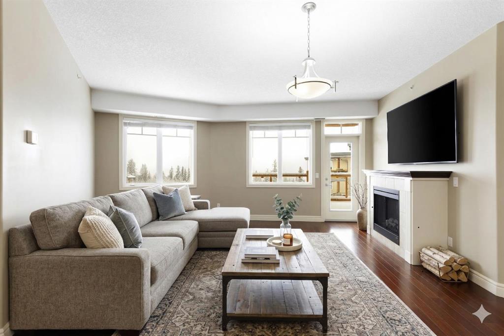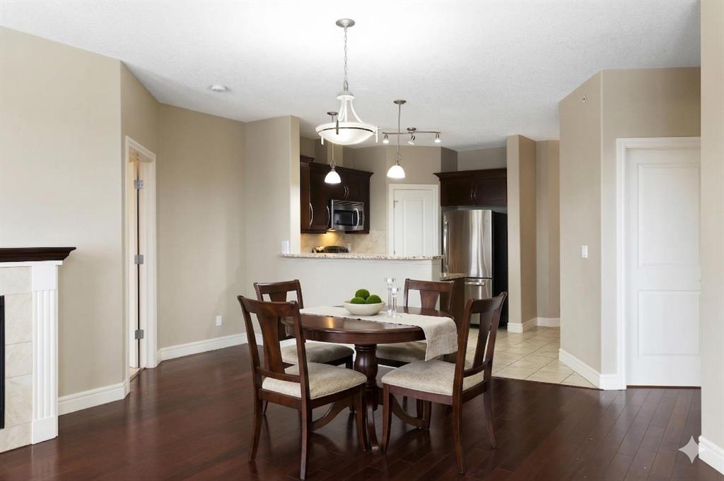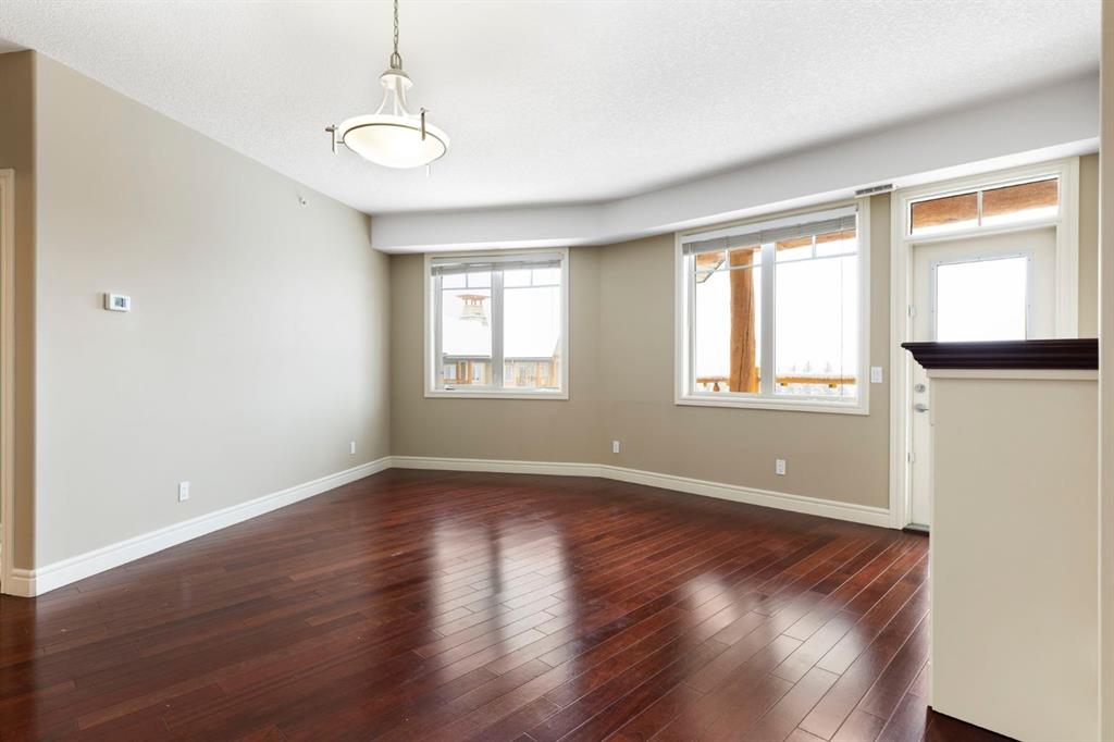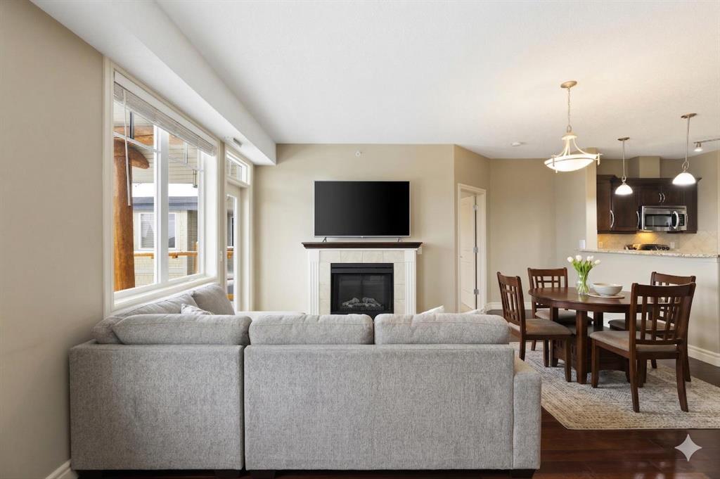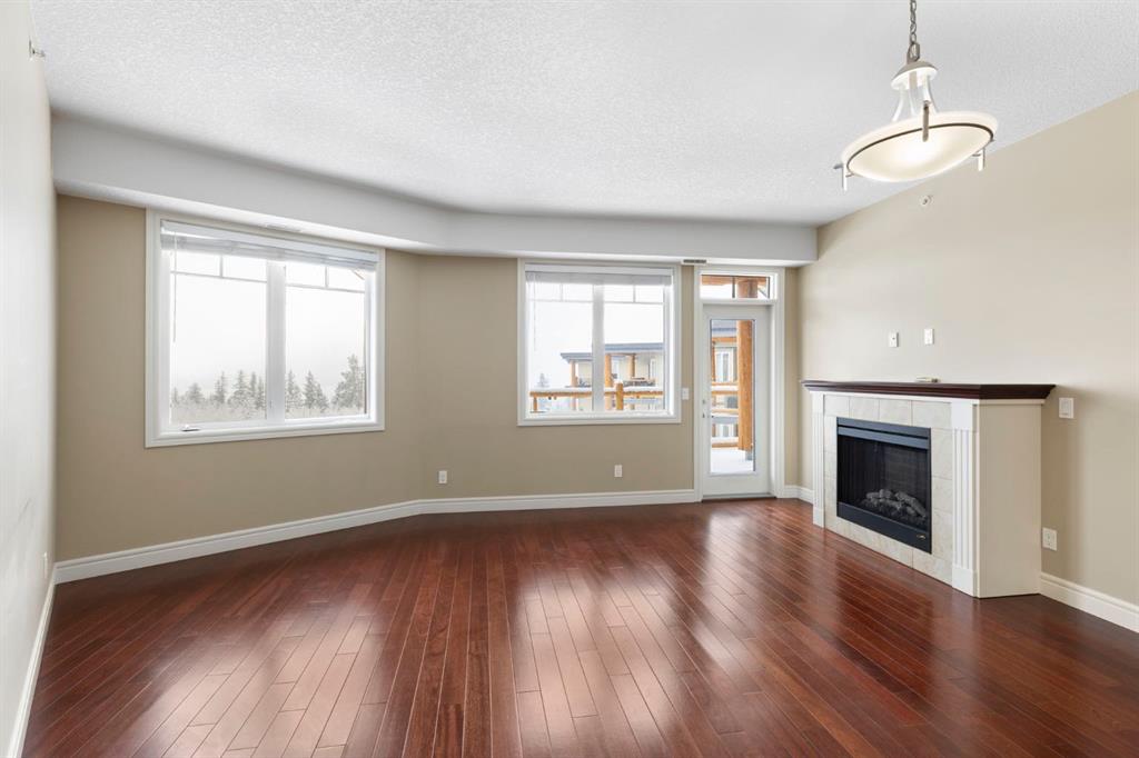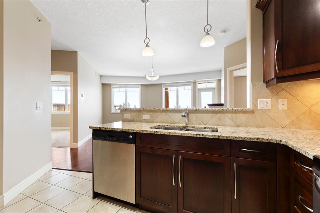 Located on the TOP FLOOR with DIRECT VIEWS OF FISH CREEK, this extremely well-kept two-bedroom, two-bathroom unit is in the prestigious Sanderson Ridge complex in Evergreen. Entering your top-floor unit, where no one lives above you, you\'ll notice the hardwood floors, a well-kept kitchen with granite countertops, stainless steel appliances, and a generous pantry. The sink overlooks your bar seating, dining room and living room with views for miles, even reaching downtown where you can see the fireworks during Stampede. The living room also features an electric fireplace and space for your tv. Stepping onto your oversized deck, which is reinforced with solid log beams, you\'ll be in awe of your surroundings. This patio is incredibly unique because it offers direct views of the courtyard, Fish Creek Park and downtown Calgary, very few units have this premium location. The primary bedroom also has stunning views, enough space for a king-size bed and opens into a four-piece ensuite with dual vanities and a walk-in closet. The secondary bedroom shares the same views as the living room and primary bedroom which would make it a great option for a bedroom, office or den. A three-piece bathroom with a top of the line sit up soaker tub is just outside the secondary bedroom and the in-suite laundry is just a few steps away. Sanderson Ridge offers a lifestyle everyone dreams of but few are able to enjoy. With every amenity you could ever want, this is retirement living at its finest. Amenities include: a pool, spa, gym, hairdresser, woodshop, wine cellar, coffee bar, library, car wash, theatre, bowling alley, craft room, and social room, poker room, billiards and gardening.