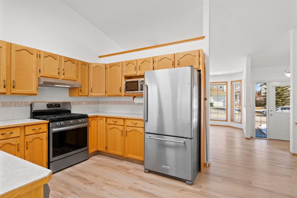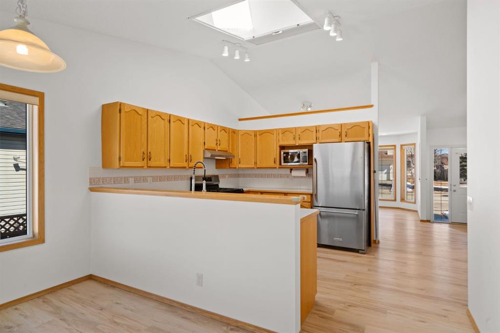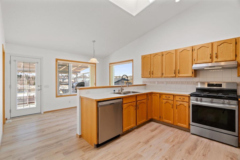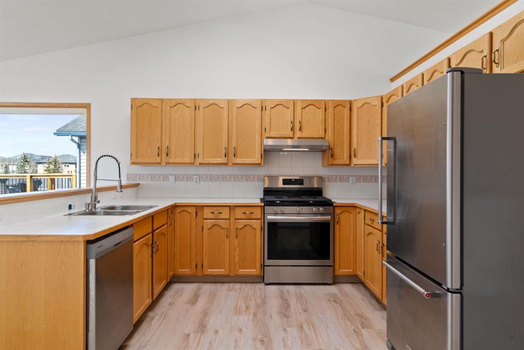 Beautifully maintained BUNGALOW in the desirable community of WEST TERRACE, just steps from Cochrane’s incredible pathway system & only a short WALK to the BOW River. This 3-bedroom, 3-bathroom home offers a functional layout with 2 bedrooms up OR enjoy your spacious primary retreat complete with PRIVATE 3 piece ensuite & use second bedroom as an OFFICE! 4 piece Bath PLUS convenience of MAIN FLOOR laundry on this level. Bright, inviting living area featuring cozy gas FIREPLACE, vaulted ceiling & a SUN FILLED kitchen enhanced by a skylight. SO much counter space. Walk in pantry! Recent updates include PAINT, vinyl plank flooring (2026), newer appliances - including gas stove (2025), dishwasher (2024), updated doors, furnace (2023), roof shingles (2021). Hidden screen doors for your comfort. All these updates will allow you to start enjoying this home right away - while providing peace of mind for years to come! The fully finished walk-up basement (Polycarbonate roof to protect stairs) offers additional living space, another bedroom (Window may not be egress to todays standards), 3 piece bth & flexibility for a variety of lifestyles. Multi generational living possible here! Potential for Suite subject to approval and permitting from the Town of Cochrane, in basement w/separate entrance. SOUTH outdoor living is a standout!!! GREAT curb appeal from the minute you pull up! Did I mention how much street parking you can enjoy?! Enjoy COVERED deck off kitchen overlooking McCaig\'s Park - featuring Polycarbonate roof, dura-deck, new stairs (2025) & gas line for BBQ. The PRIVATE backyard (no neighbours behind you!) backs onto greenspace & includes large gated concrete pad. Trailer parking, addtl storage or perfect entertaining space. OVERSIZED DOUBLE GARAGE 23.3 x 23.3 is HEATED, wired with 220V & comes equipped w/air lines & compressor - ideal for hobbyists or anyone needing extra workspace! Back alley is bus route - ALWAYS plowed/graded. Addtl features include Vacu-Flo rough-in, underground water system front & back (professionally maintained) & prepaid lawn care services for the 2026 year! Nicely landscaped front/back with apple trees, cherry trees, and perennials. Rare opportunity to own well LOVED home - in PRIME location close to nature, pathways & all amenities. THREE schools in area. West Terrace has MANY playgrounds & is well connected by footpaths. Ride your bike, walk the dog or take the family for a walk along the path beside the Bow River & enjoy NATURE in your own neighbourhood! Easy access to everything downtown Cochrane offers. Close to Calgary. Be in mountains under 45 mins! 40 mins to Calgary Airport or Downtown. NO POLY B.
