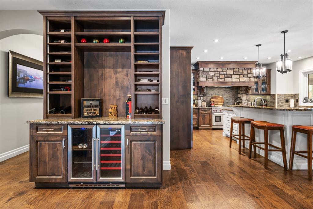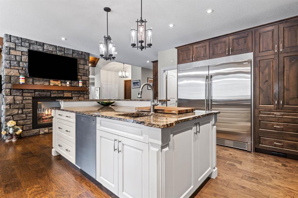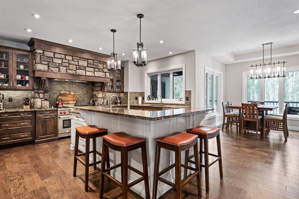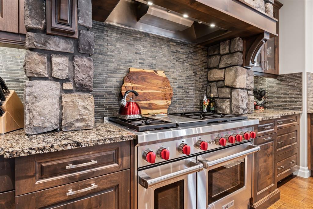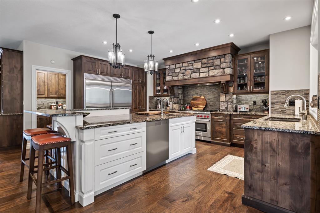 The chef-inspired kitchen is truly the heart of the home, featuring granite countertops, a large island, side-by-side fridge and freezer, a 6 burner Wolf gas stove with dual ovens, and the convenience of two dishwashers perfect for entertaining.