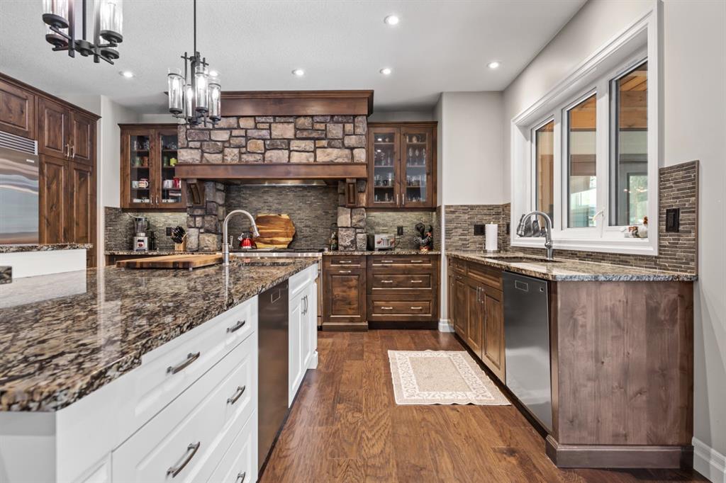 Additional features include dual furnaces and central air conditioning, as well as in-floor heating in the basement, garage, and ensuite for year-round comfort.